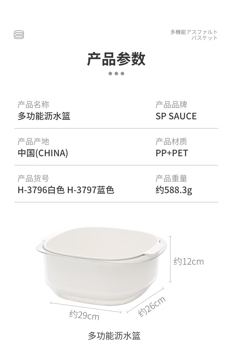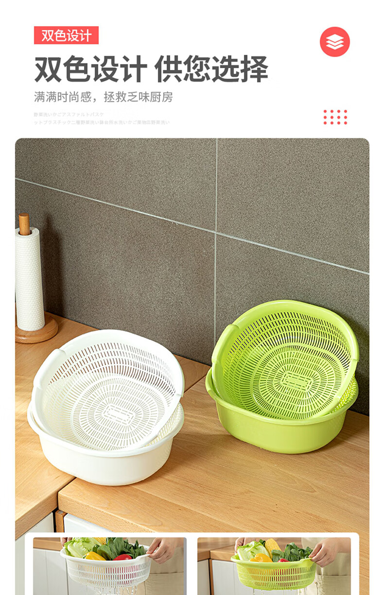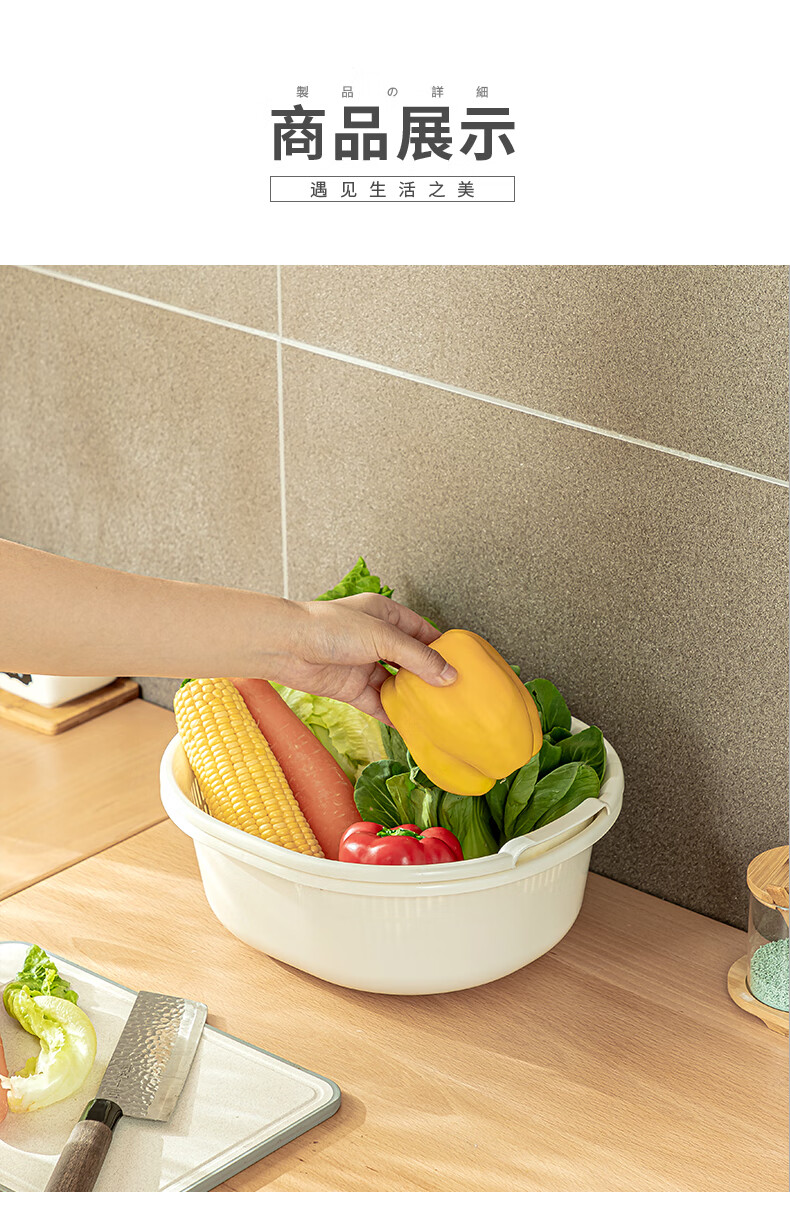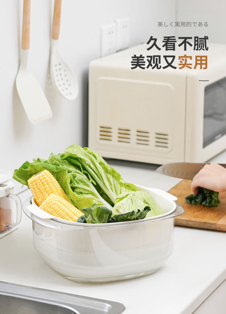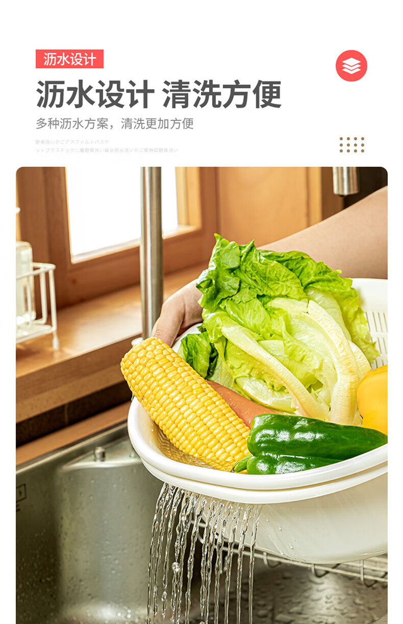 SP SAUCE Japan imported vegetable sink kitchen drain basket washing basin dish storage basket combination of 2 pieces white Japanese SANADA