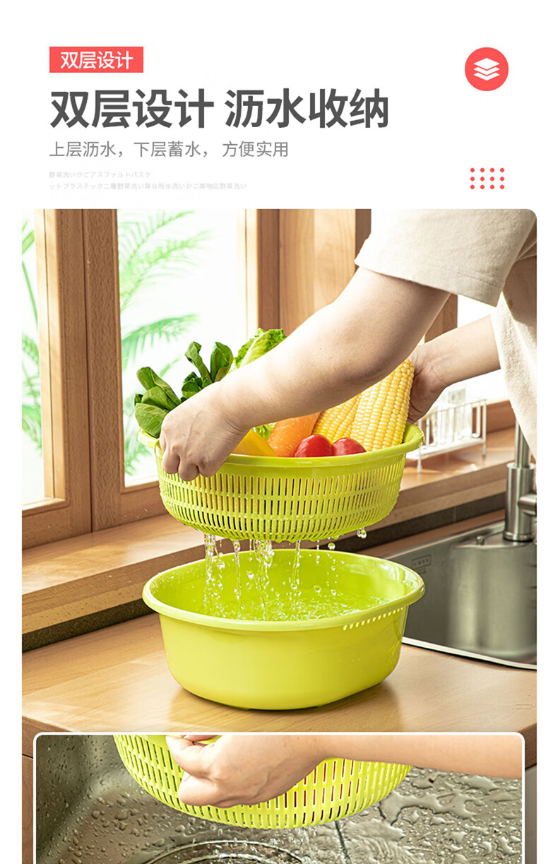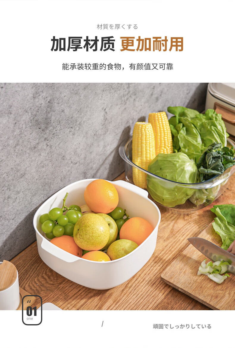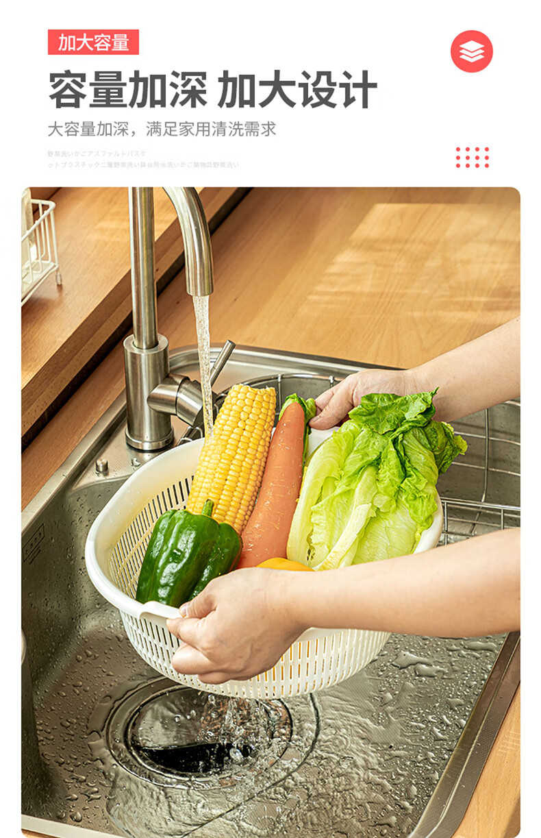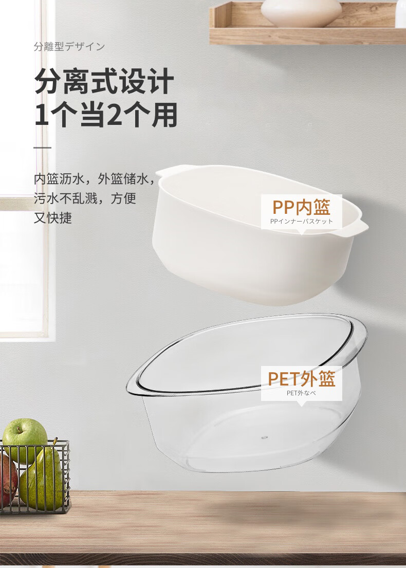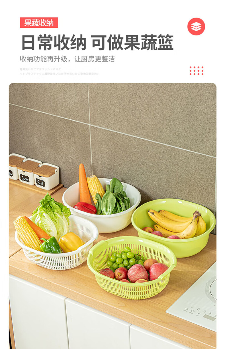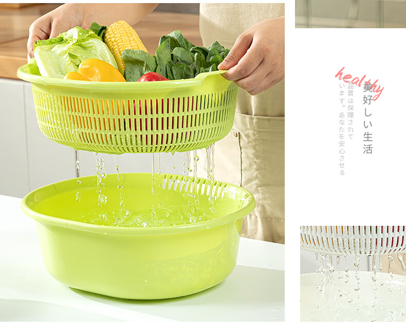 SP SAUCE Japan imported vegetable sink kitchen drain basket washing basin dish storage basket combination of 2 pieces white Japanese SANADA