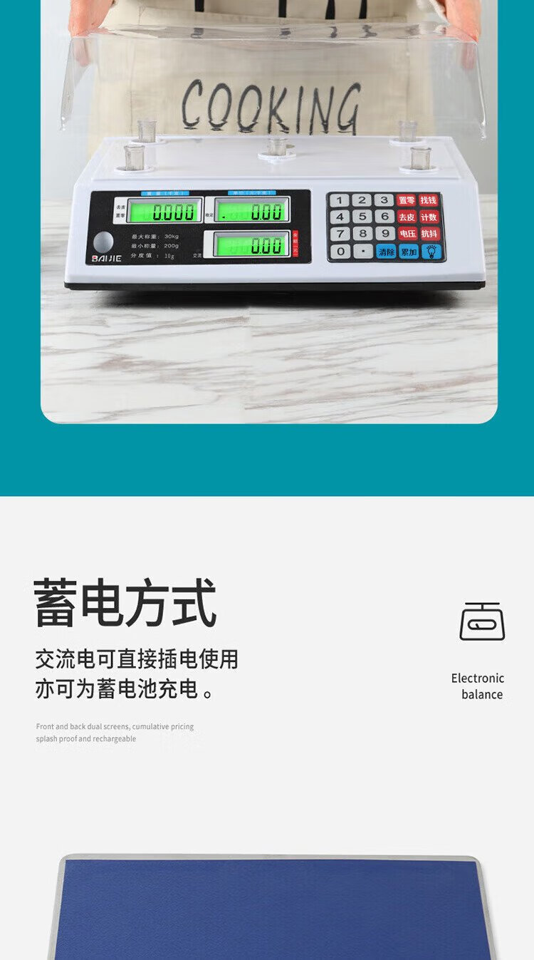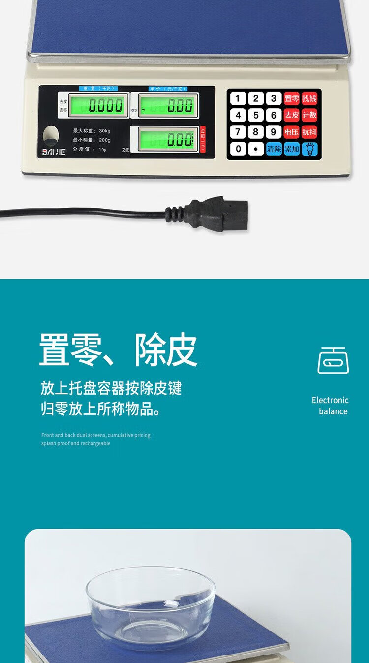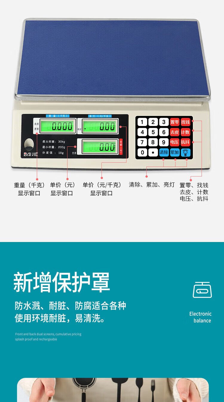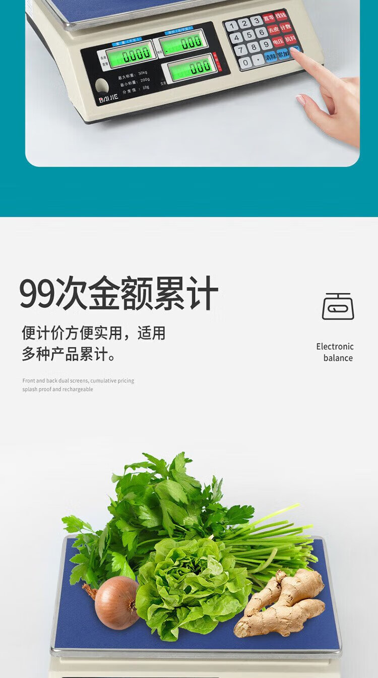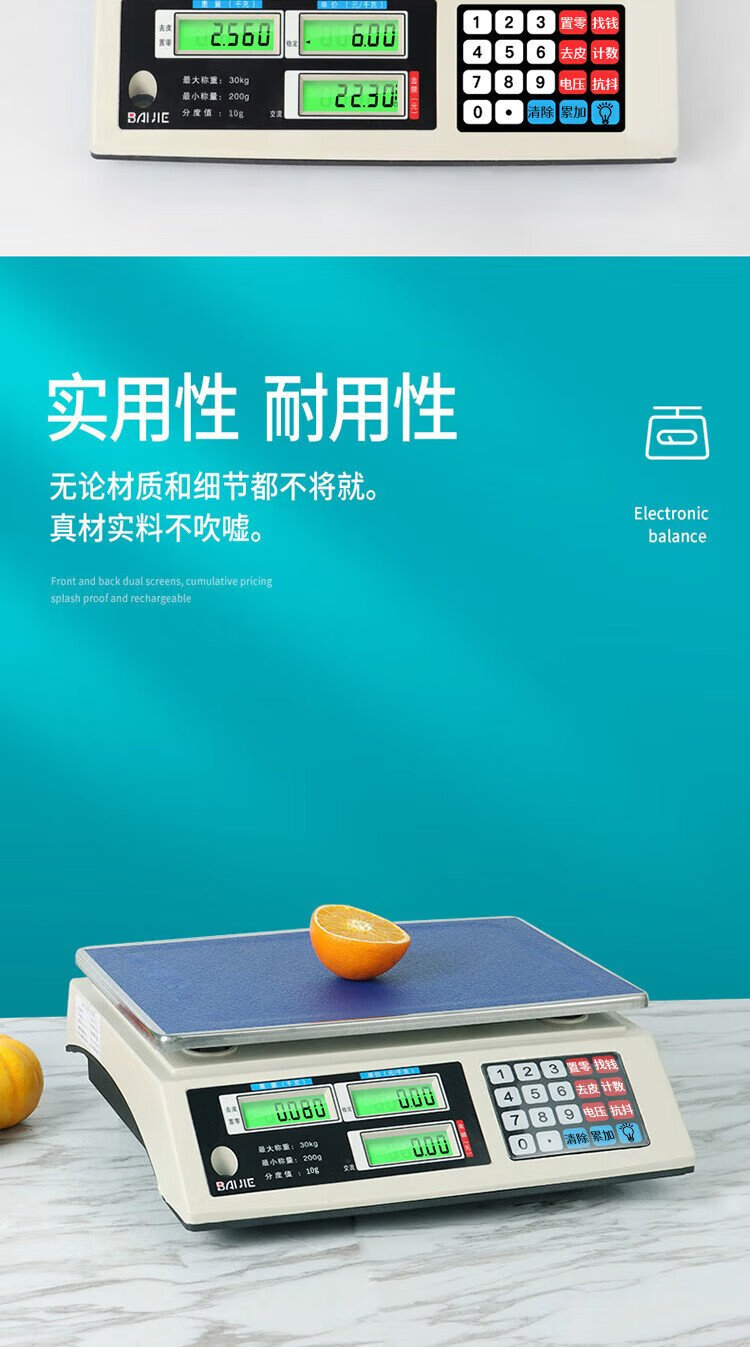 Baijie electronic pricing platform scale electronic scale commercial food scale vegetable and fruit electronic scale 30KG flat