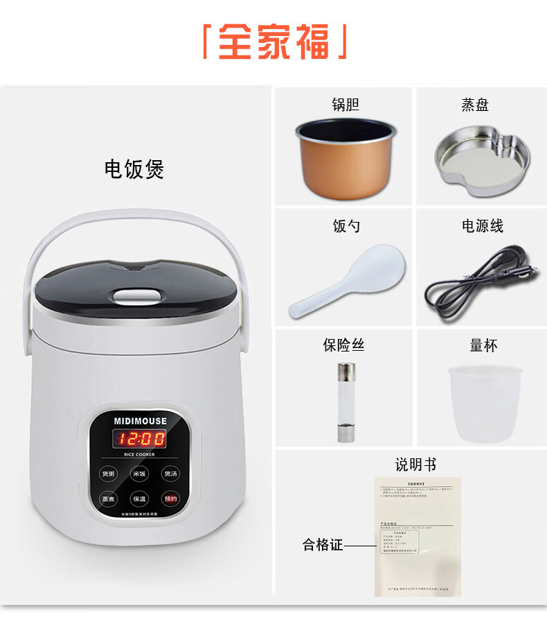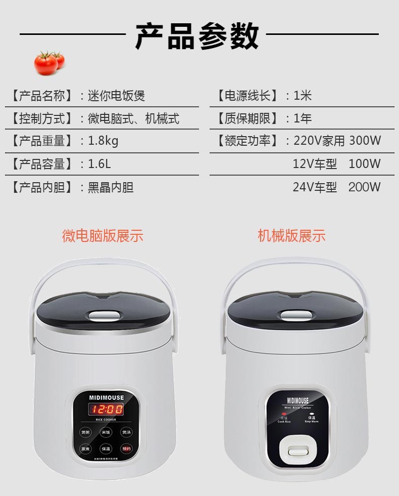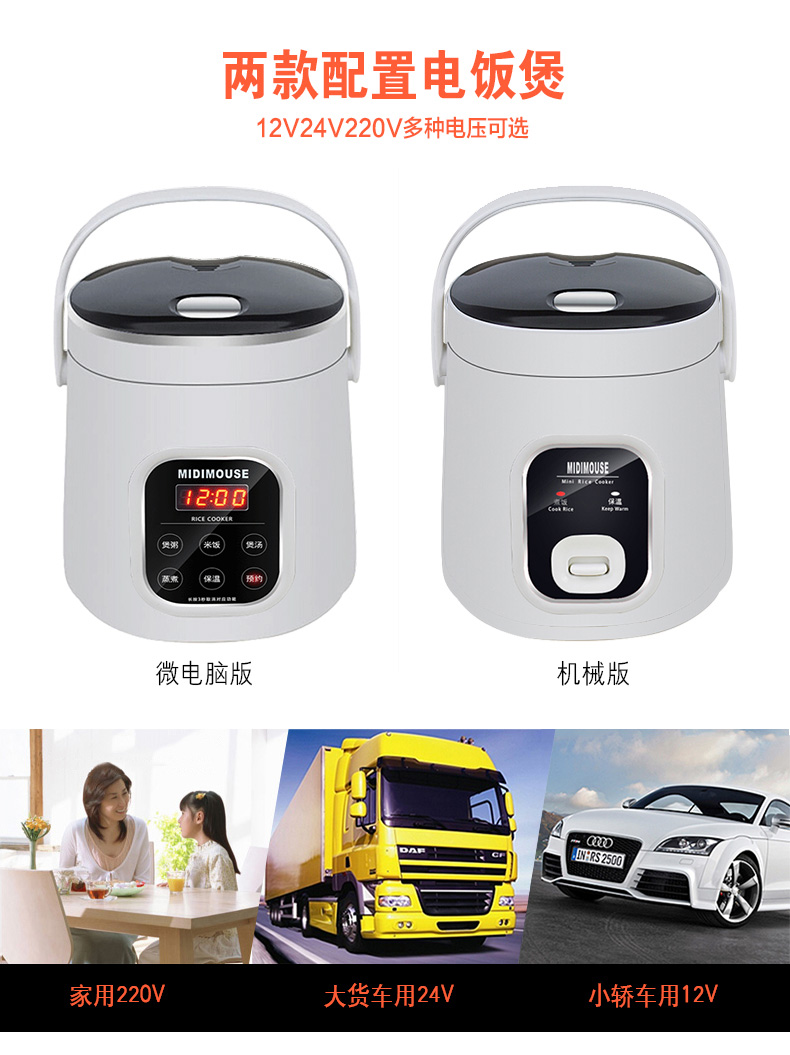 MIDIMOUSE car-mounted rice cooker car-mounted rice cooker 24V large truck 12V car home dual-purpose 24-volt car rice cooker 1.6L-12V car SUV off-road special 1.6L