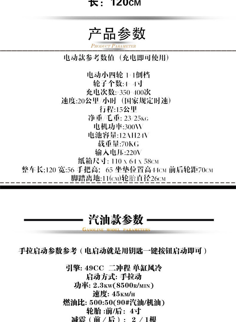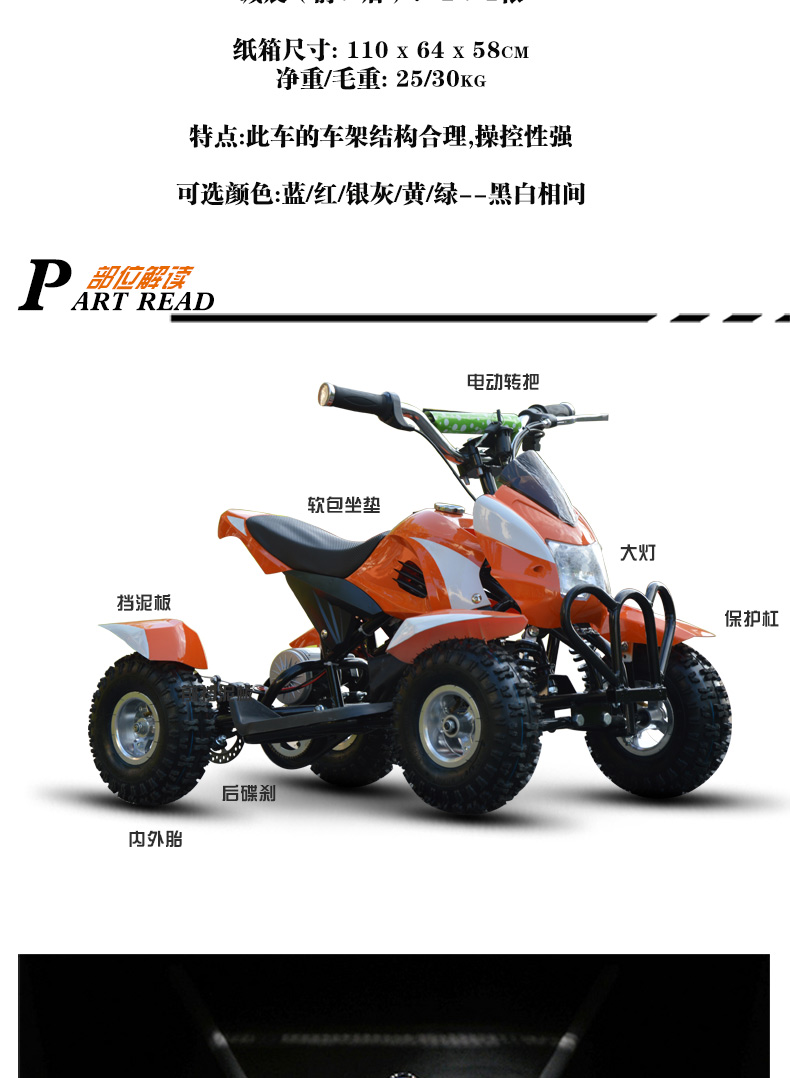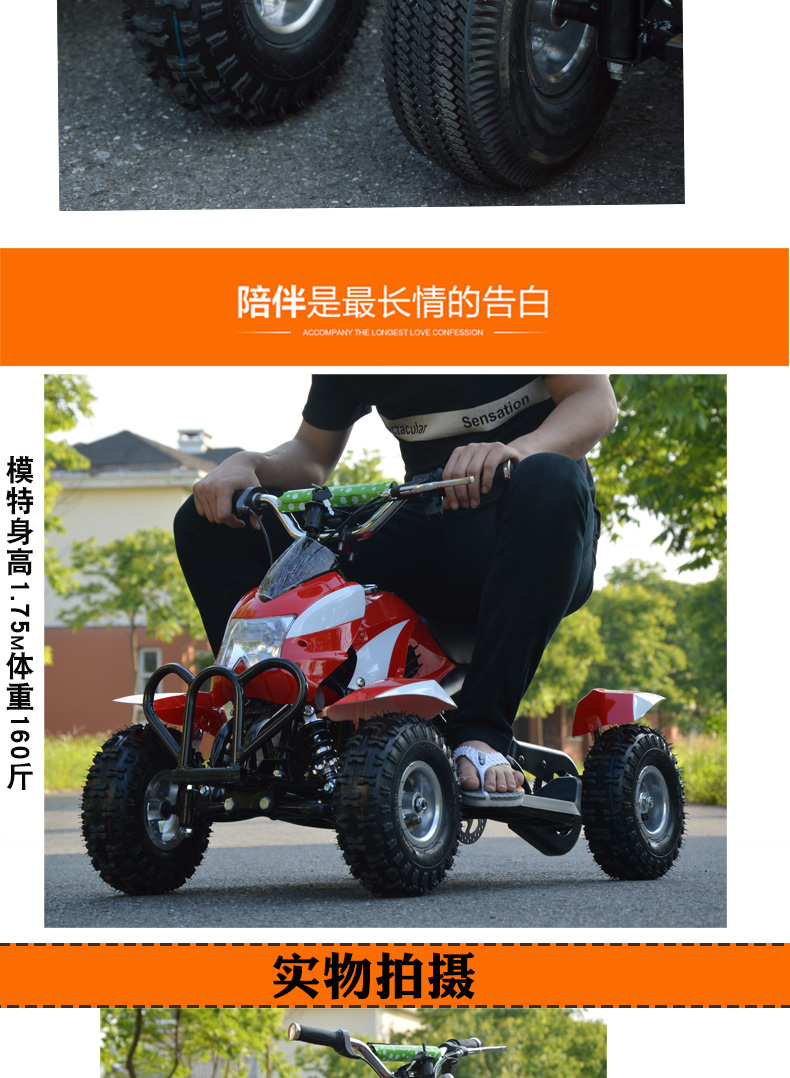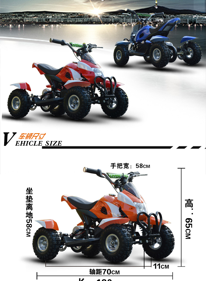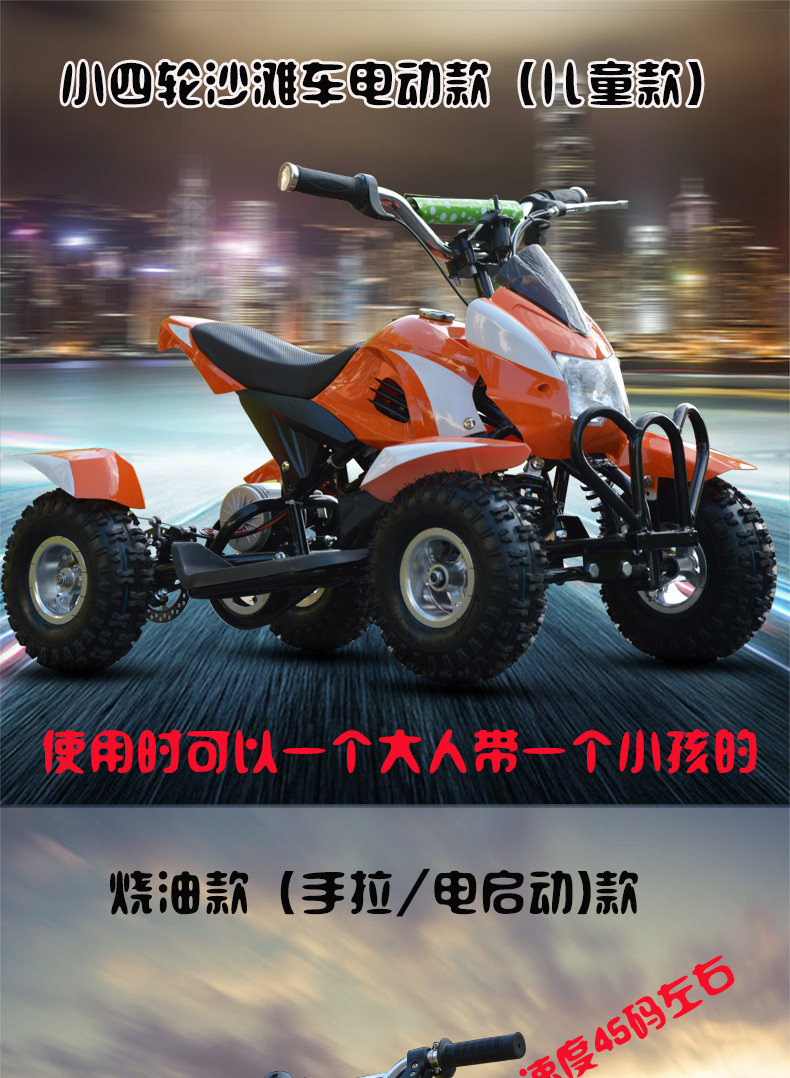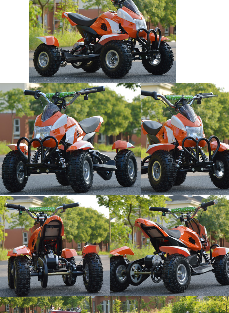 Airuge 49cc fuel four-wheel motorcycle, small four-wheel rechargeable electric ATV, children's mini motorcycle, red and white, oil-burning electric start model