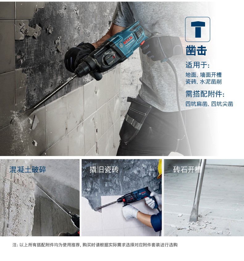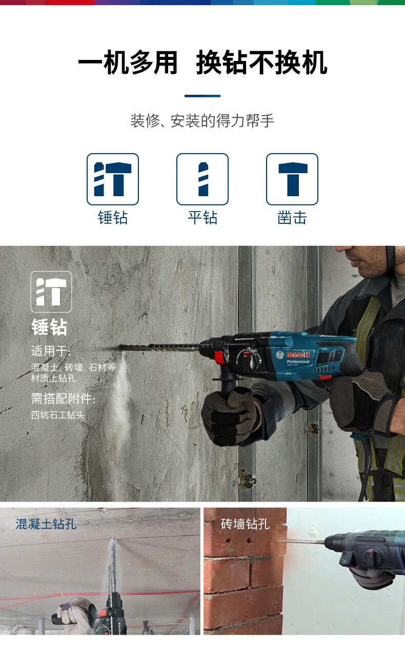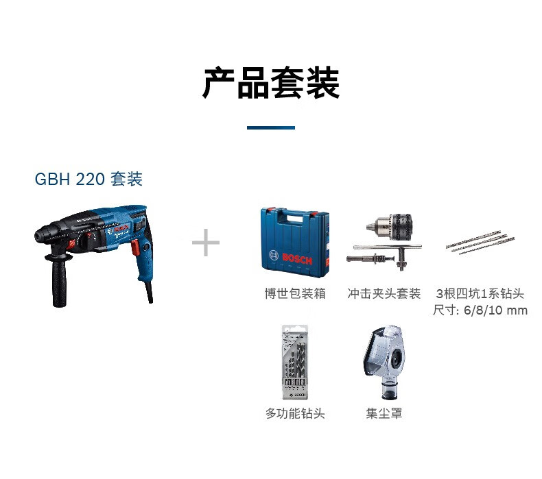 Bosch (BOSCH) GBH 220 three-function 2kg professional electric hammer/electric pick/impact drill/electric drill concrete forward and reverse speed regulation GBH220 three-function 720W + accessory gift pack