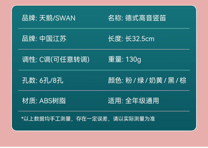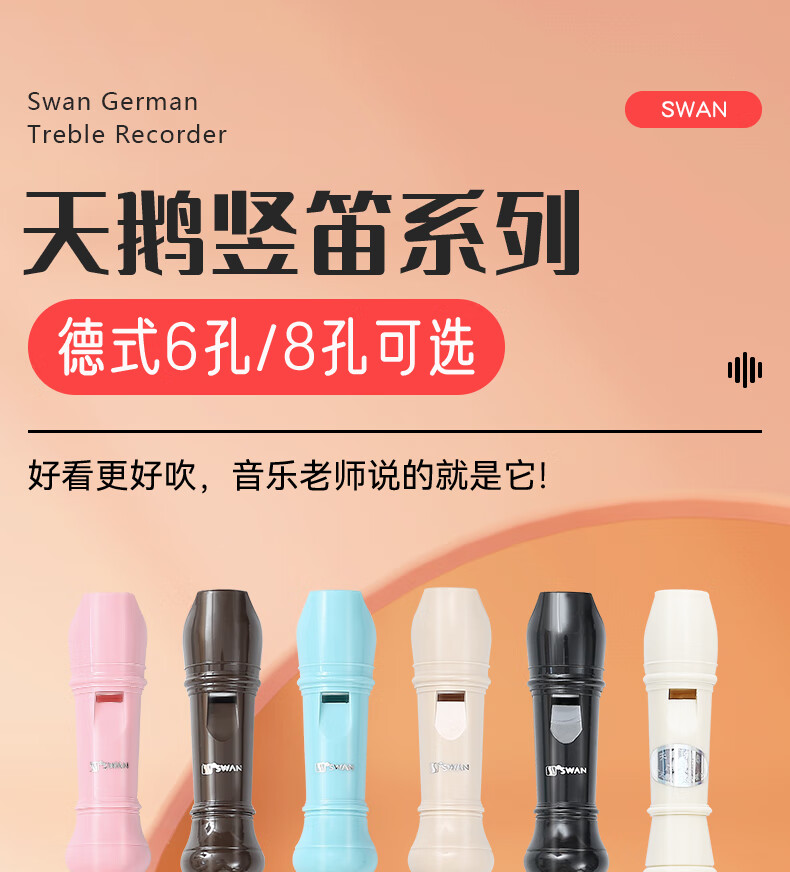 Swan classroom instrument recorder 6-hole entry-level children's instrument 8-hole beginner treble teaching practice recorder PP recorder Swan PP six-hole recorder