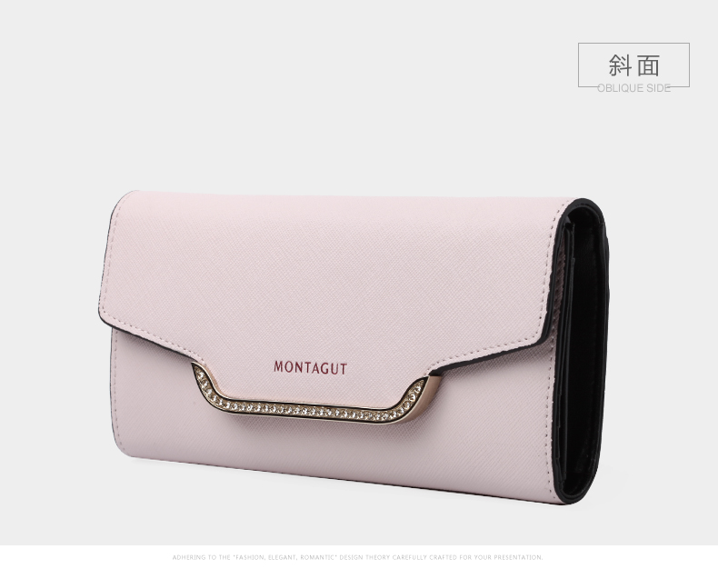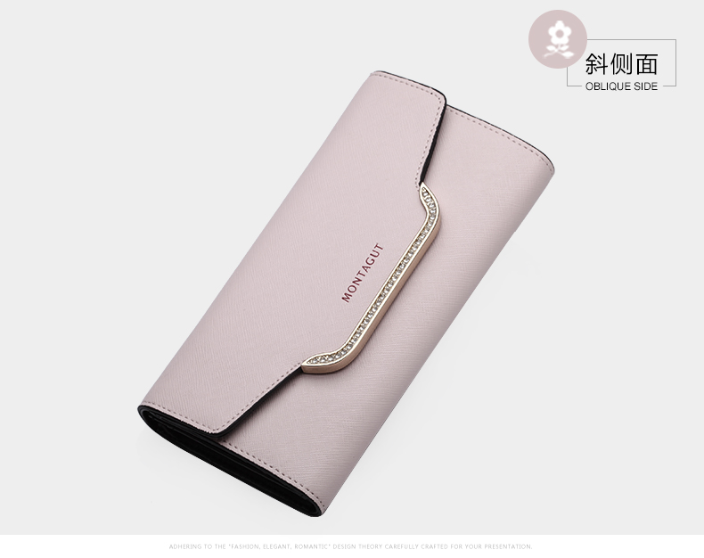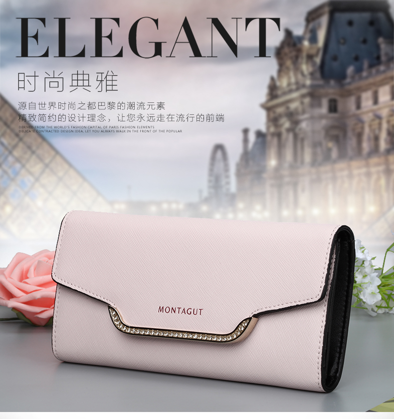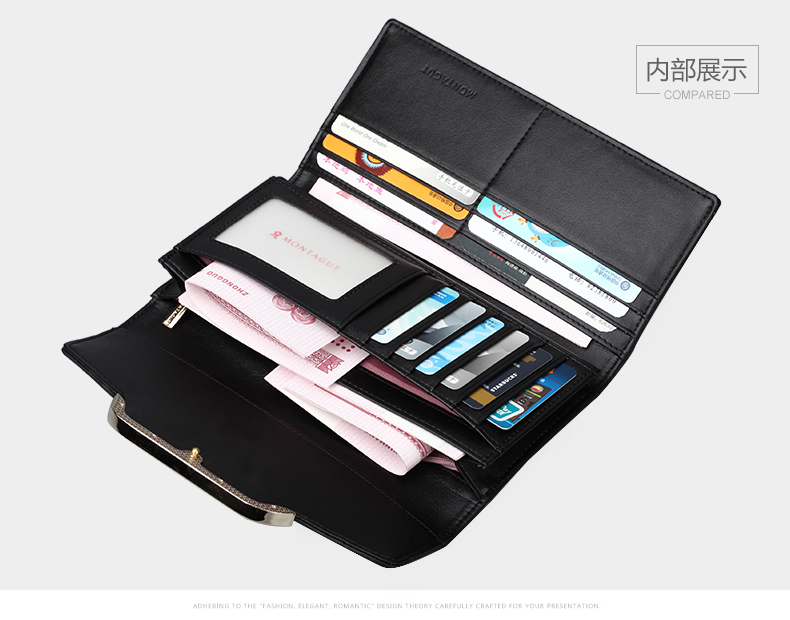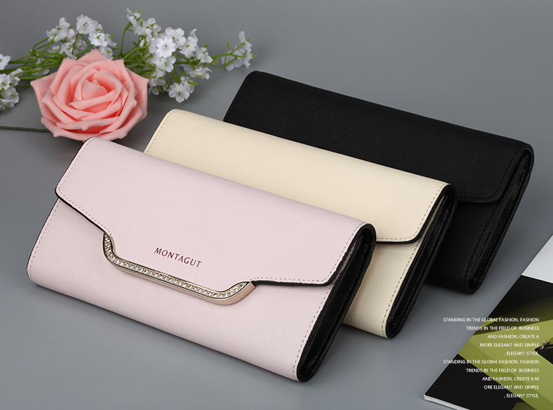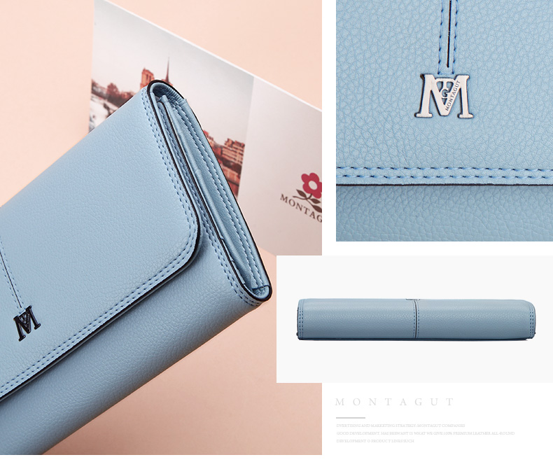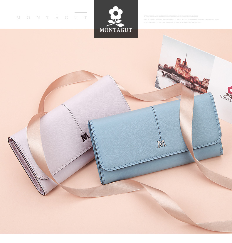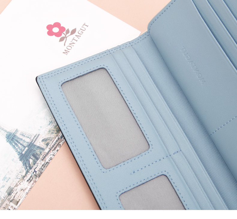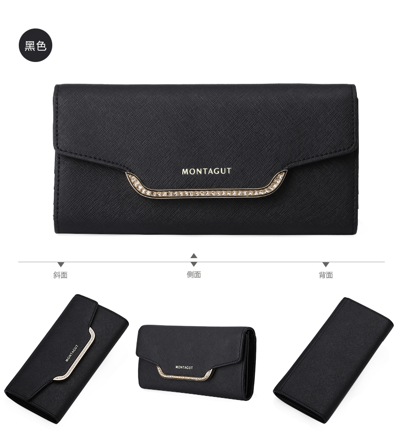 MONTAGUT women's wallet long fashion buckle leather clutch bag 30% off large capacity multi-card slot wallet trendy black
