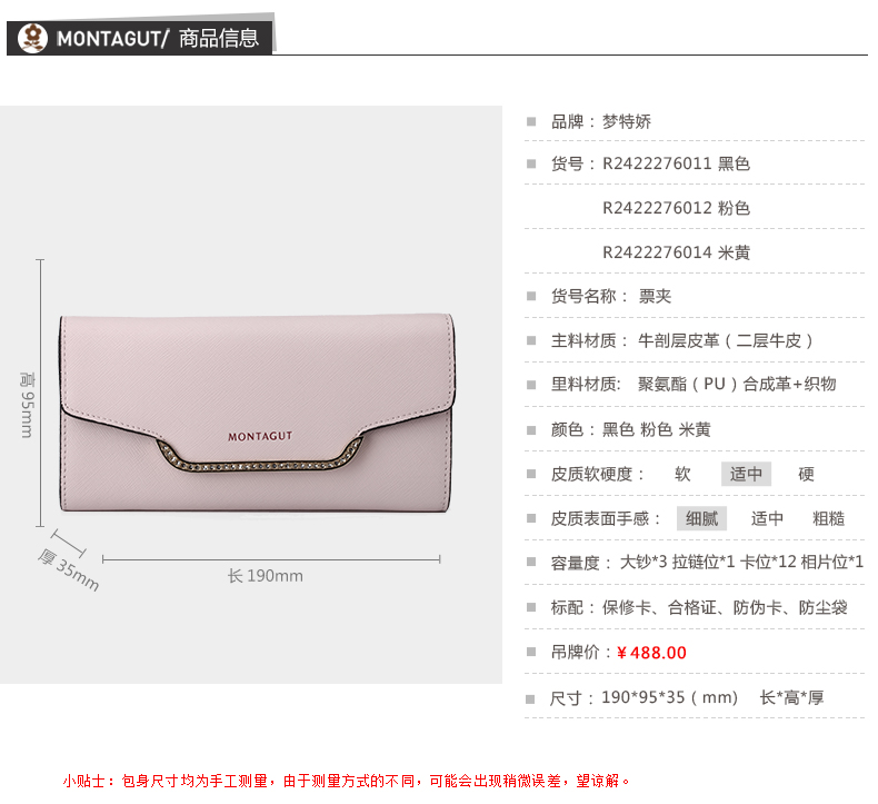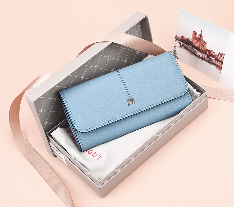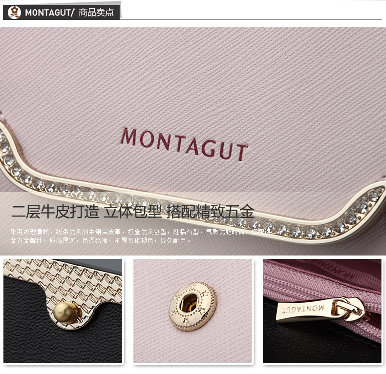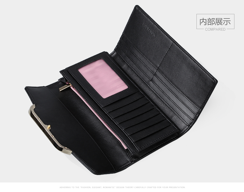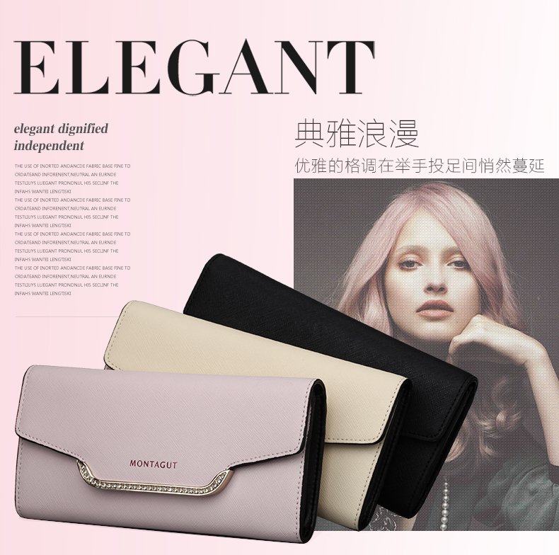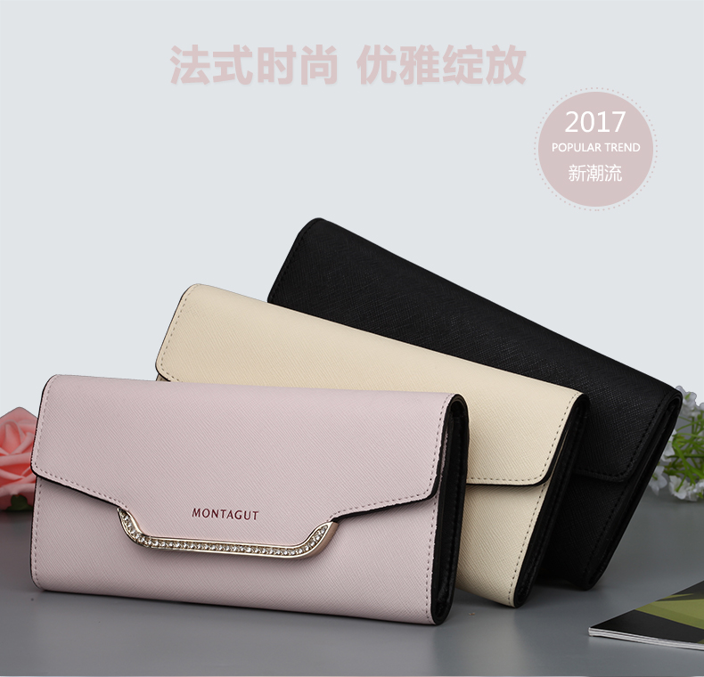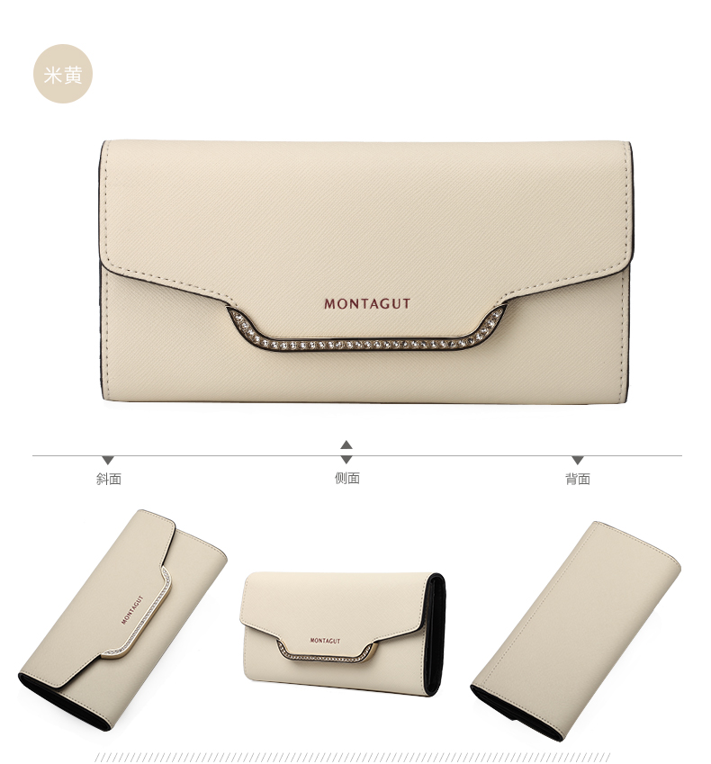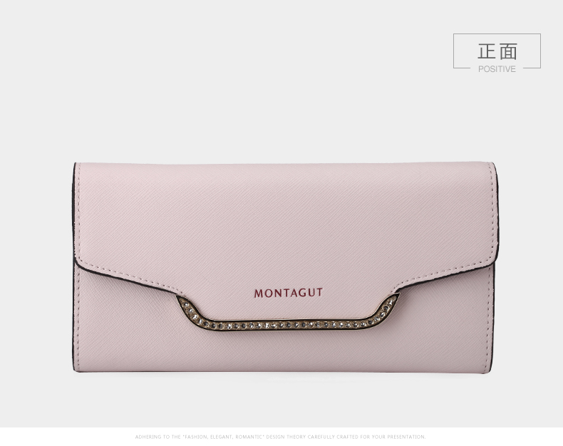 MONTAGUT women's wallet long fashion buckle leather clutch bag 30% off large capacity multi-card slot wallet trendy black