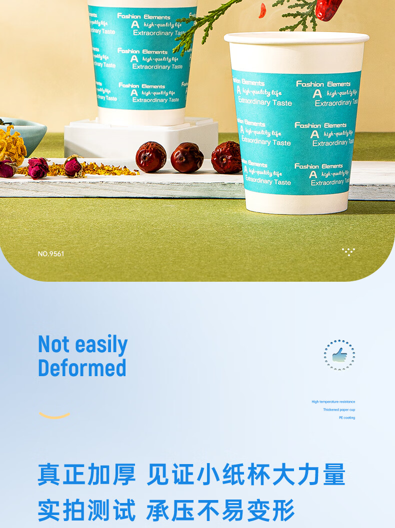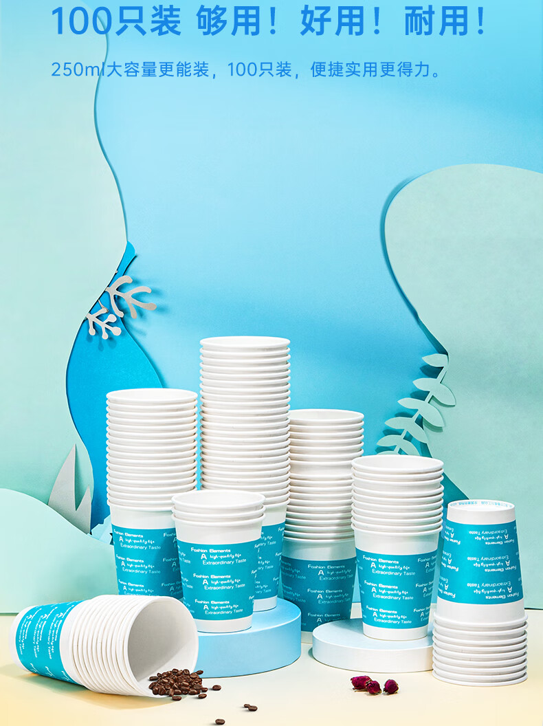 Deli 250ml (9 ounces) thickened disposable cups, water cups/paper cups, 100 pieces, office supplies