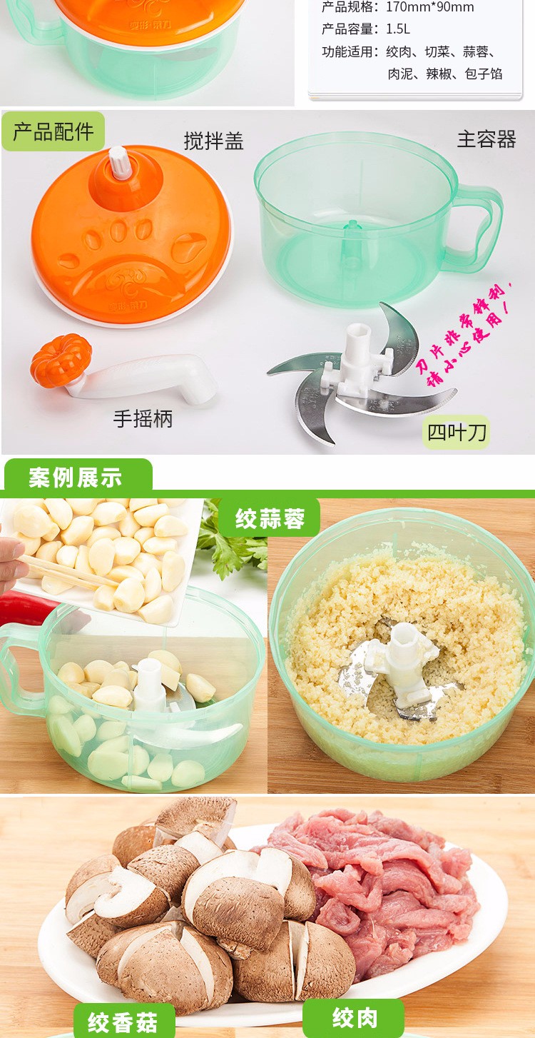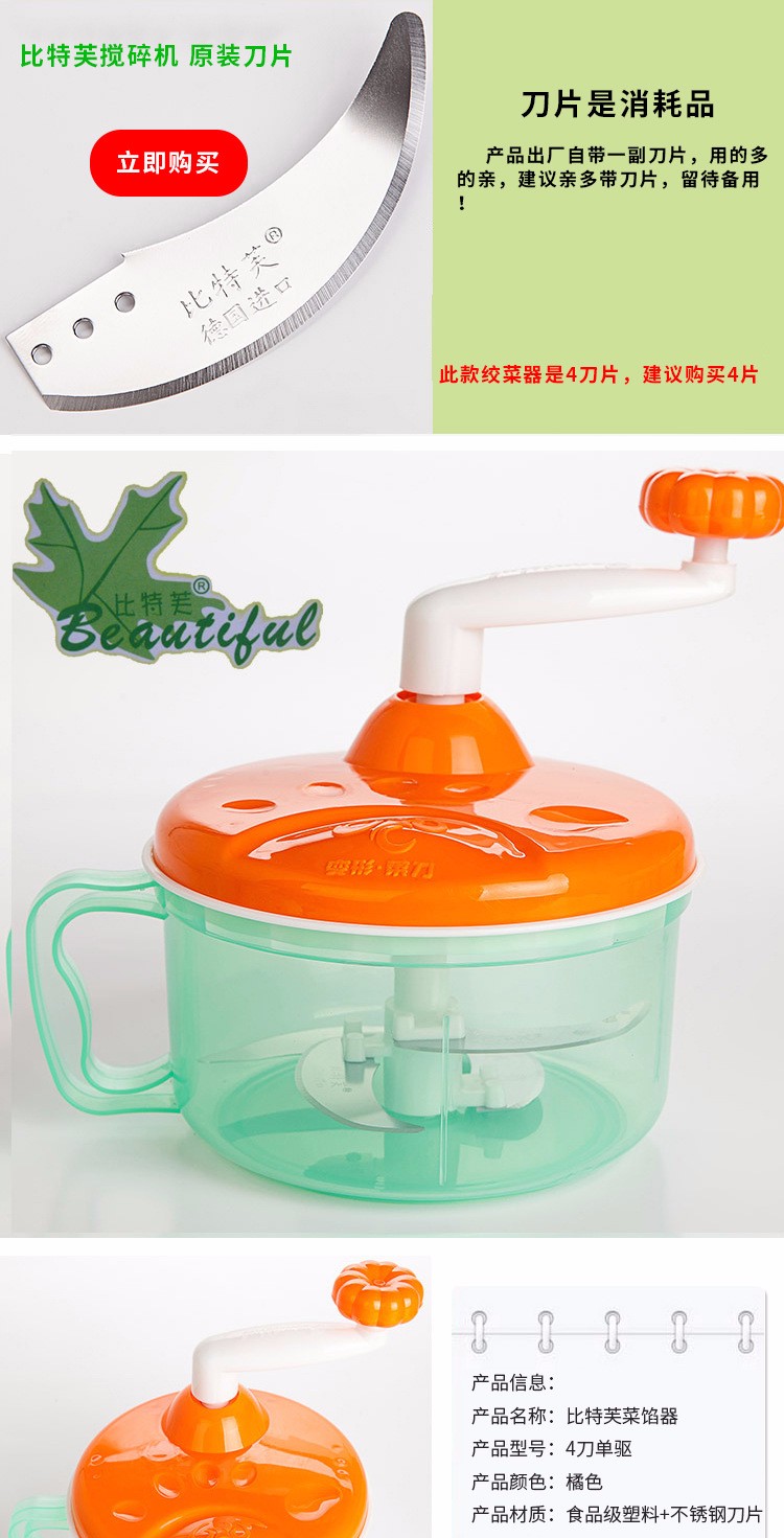 Wansongtang manual meat grinder, vegetable grinder, dumpling stuffing machine, vegetable cutter, garlic masher, garlic stirrer, garlic cutter, garlic pounder, machine + 3 blades
