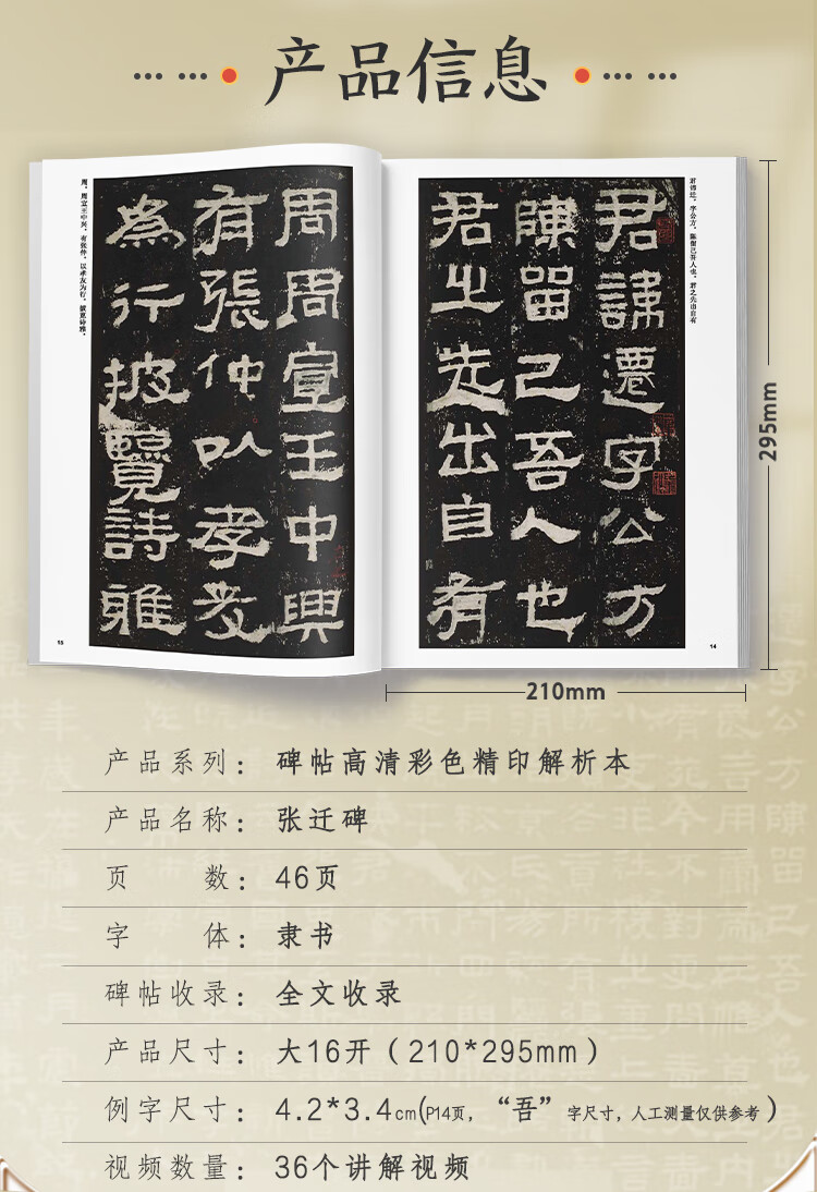 Ink dot calligraphy, brush copybook of Zhang Qian stele (video version), a rare book in the collection of Chinese stele calligraphy, high-definition color fine printing video technique analysis book, brush calligraphy of Zhang Qian stele
