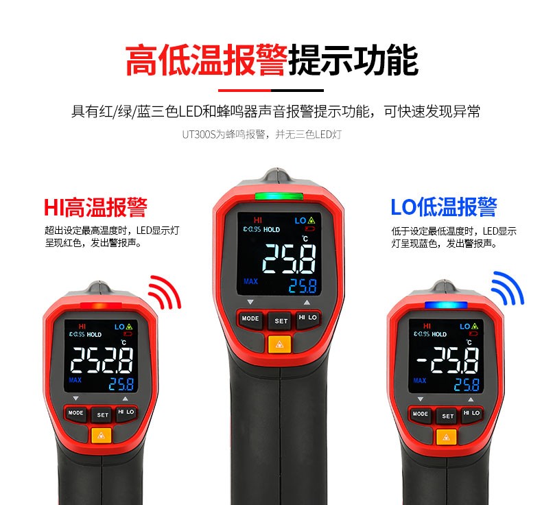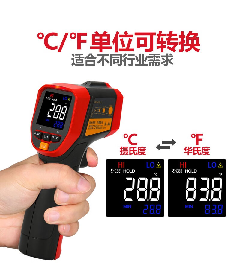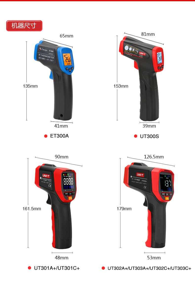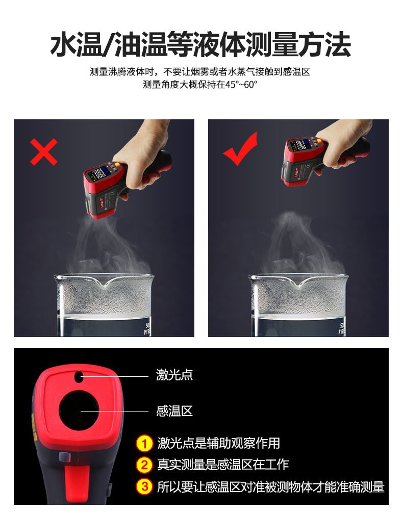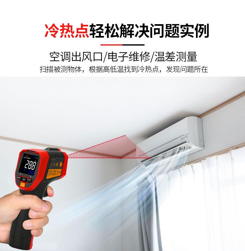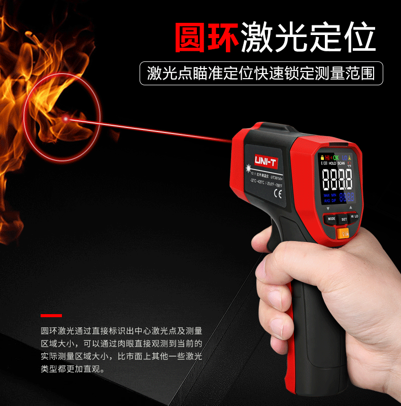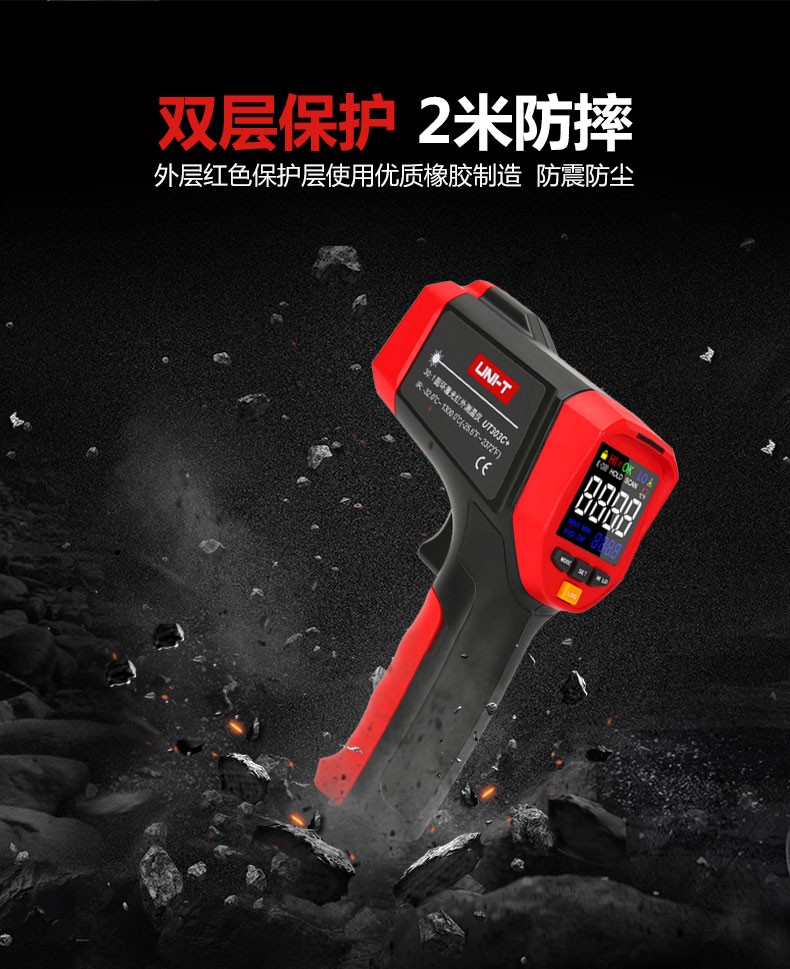 UNI-T infrared thermometer handheld industrial infrared thermometer gun high-precision high temperature electronic thermometer non-contact UT306C (-50 C~500 C)