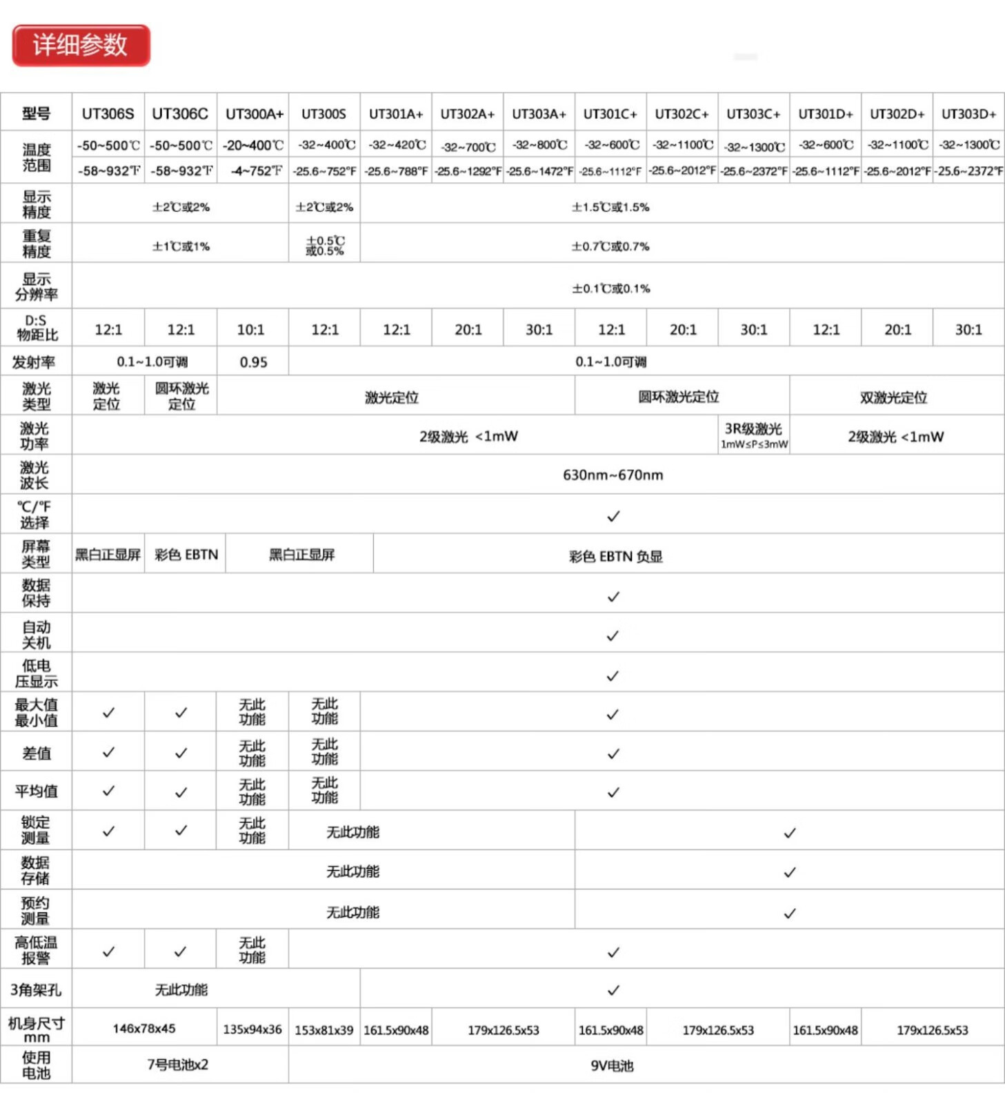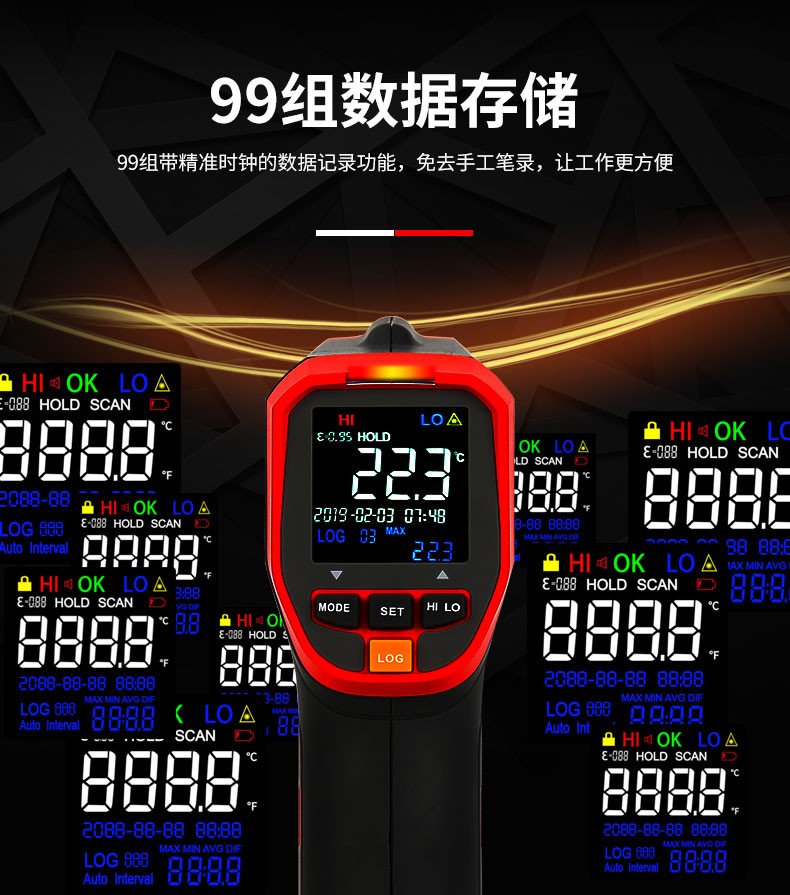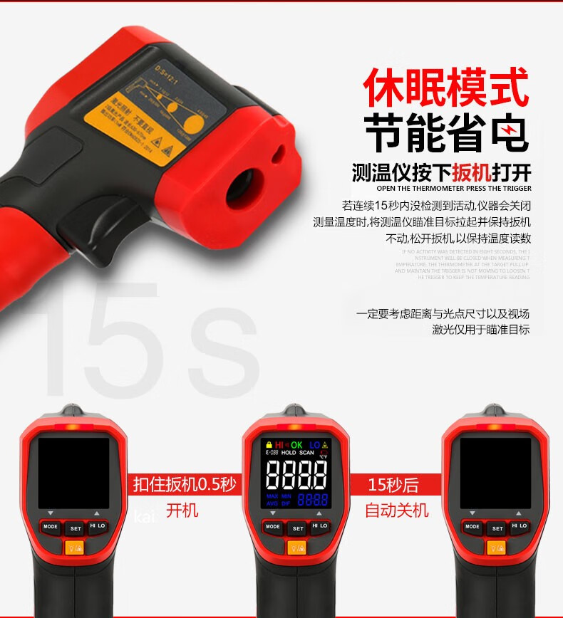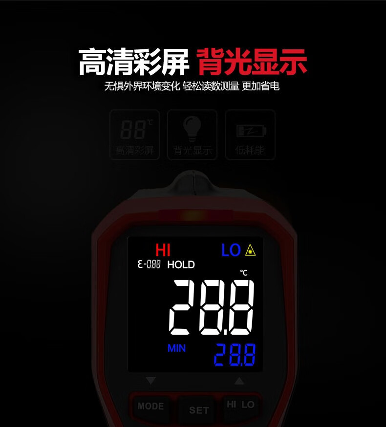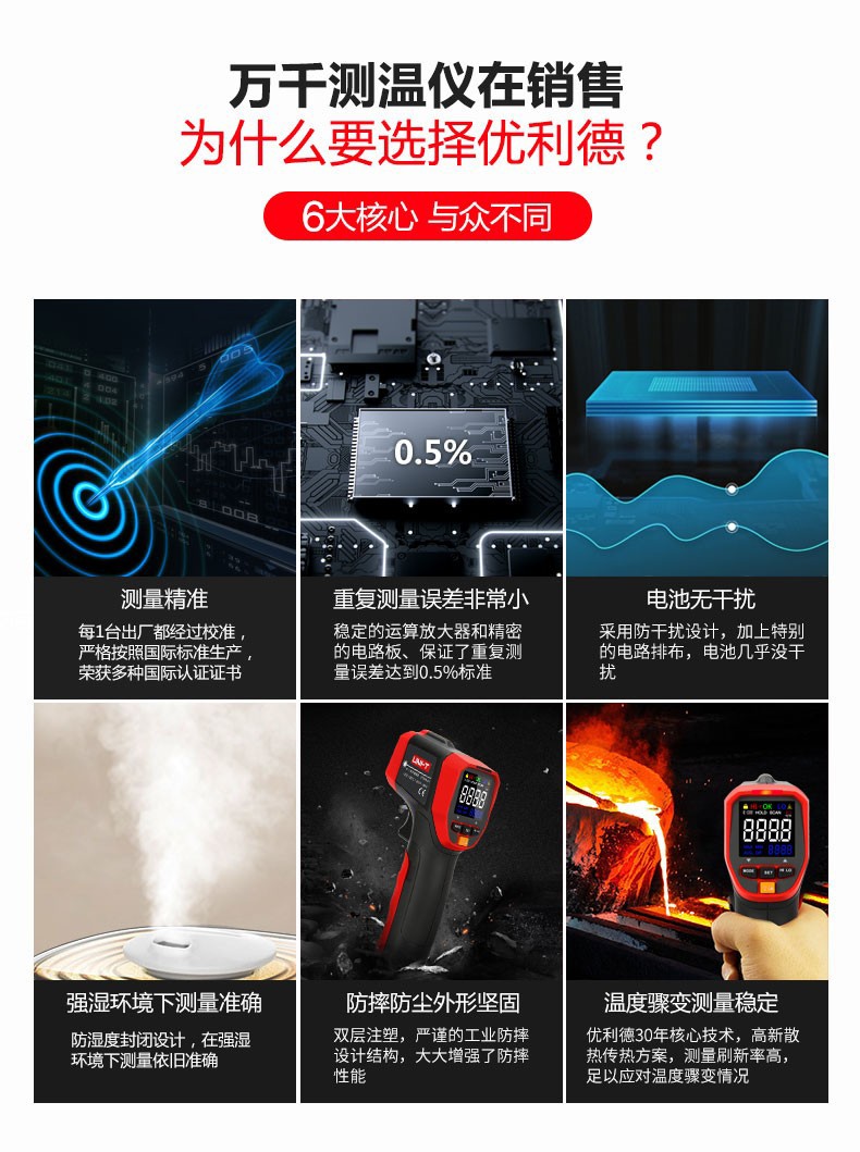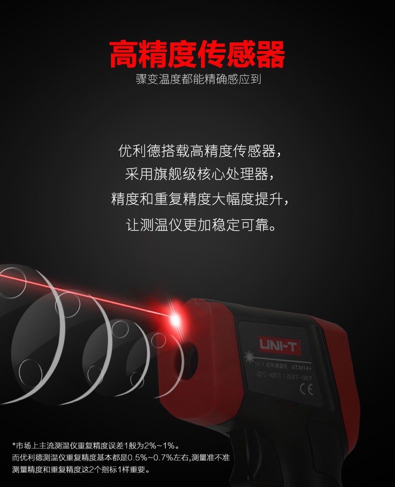 UNI-T infrared thermometer handheld industrial infrared thermometer gun high-precision high temperature electronic thermometer non-contact UT306C (-50 C~500 C)