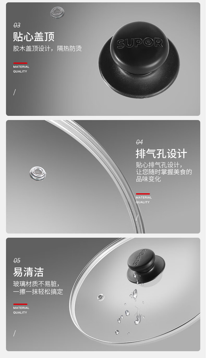 SUPOR pot lid 32cm pot lid 30cm pot lid 34cmG type tempered glass pot lid (24/26/28/30/32/34) suitable for frying pan 24cm