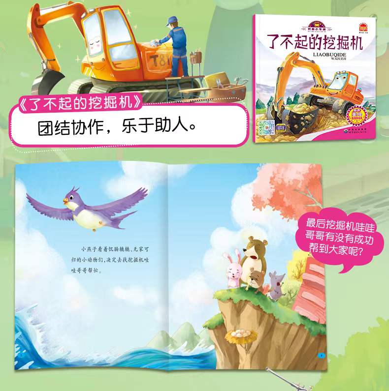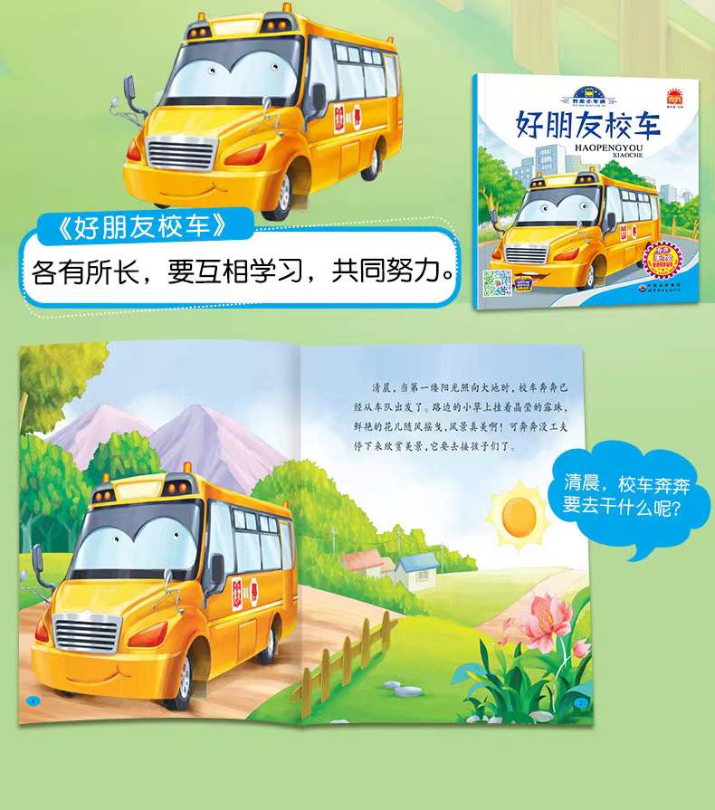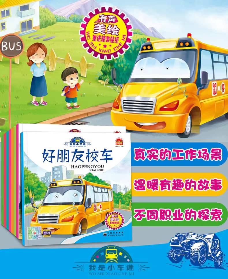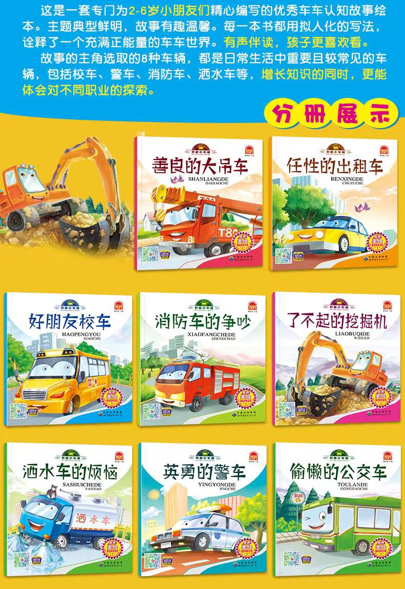 Audio companion reading I am a car fan picture book (full set of 8 volumes) free stickers good friends school bus car excavator book baby cognition early education book children's car cognition book three hippopotamuses
