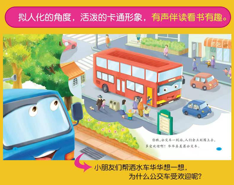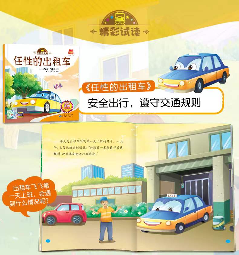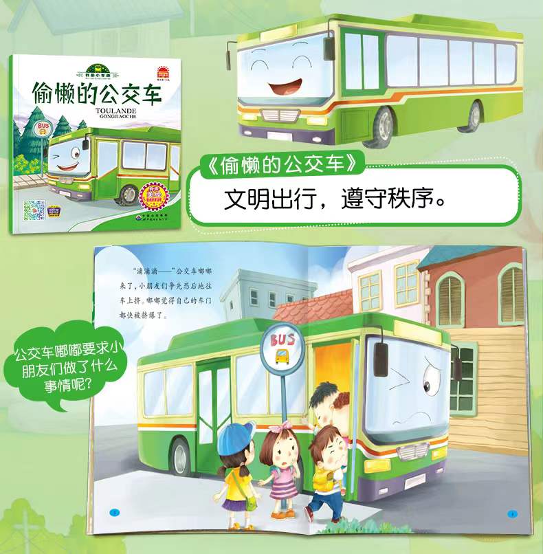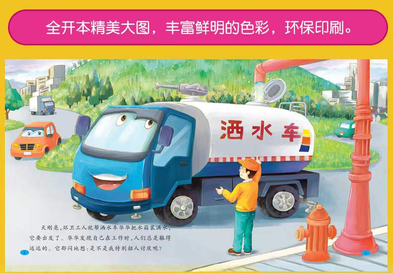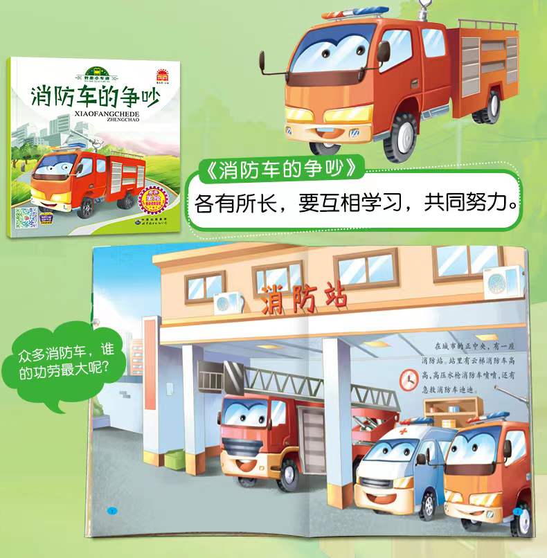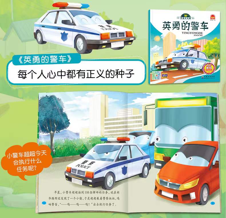 Audio companion reading I am a car fan picture book (full set of 8 volumes) free stickers good friends school bus car excavator book baby cognition early education book children's car cognition book three hippopotamuses