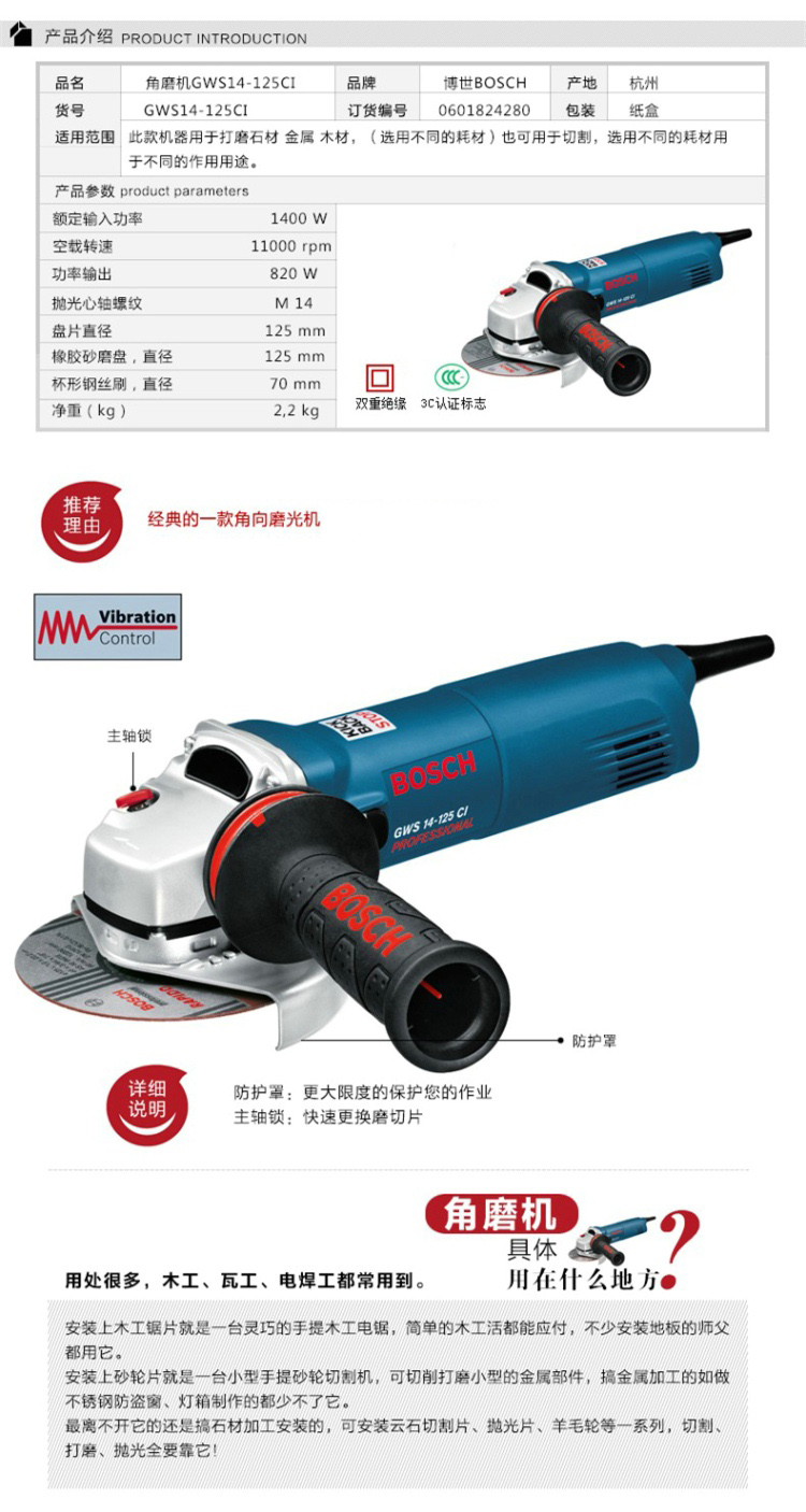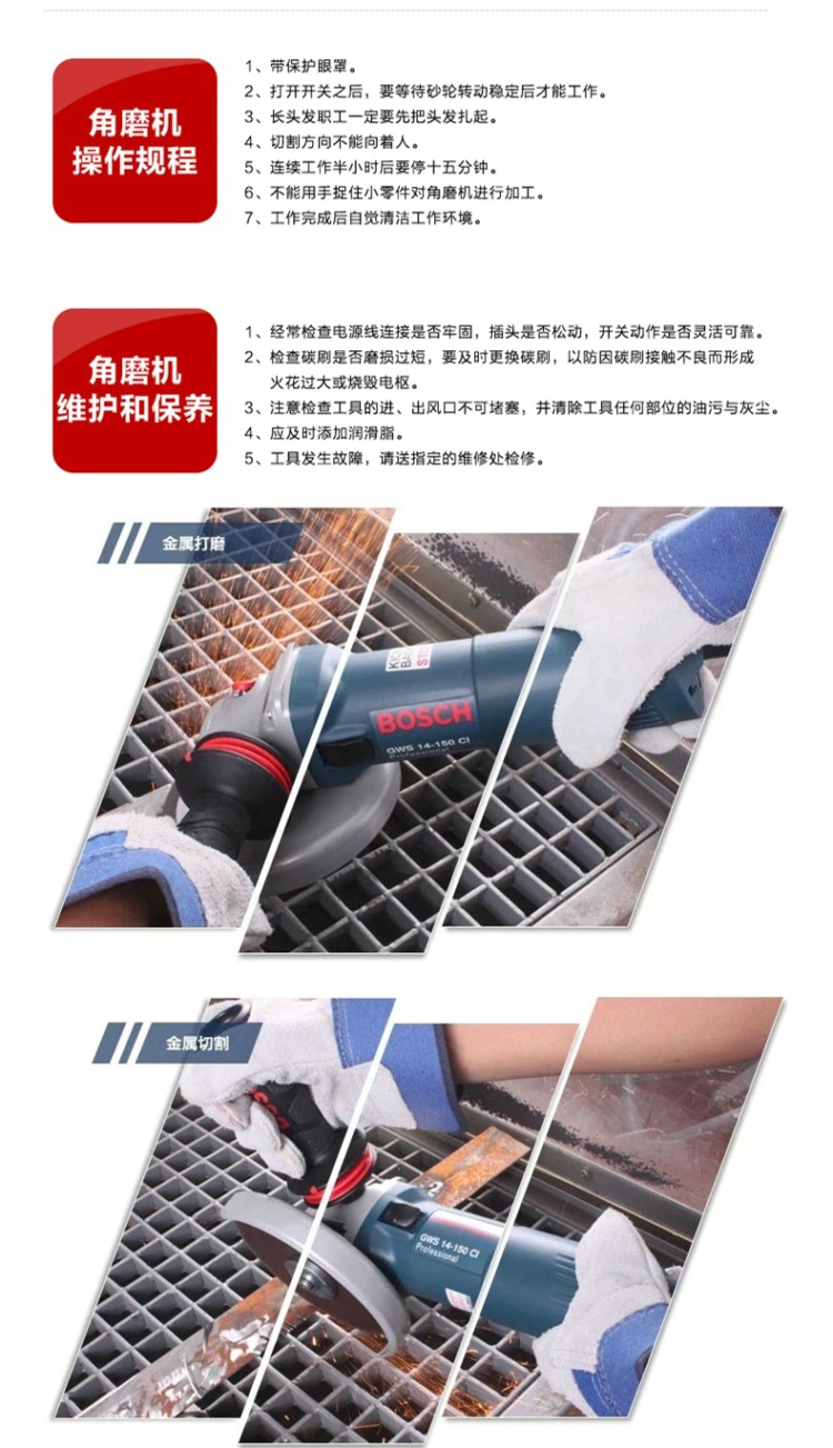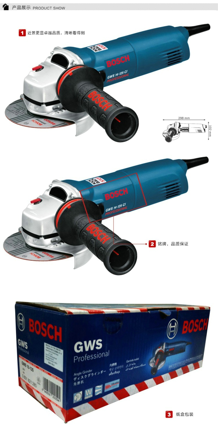 Bosch (BOSCH) angle grinder GWS14-125CI high-power 1400W angle grinder tile cutting and grinding machine Dr. electric grinder GWS14-125CI 1400W official standard configuration