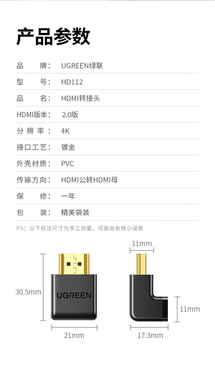 Greenlink HDMI male-to-female adapter HDMI high-definition converter cable computer set-top box to TV adapter L-shaped right-angle 90-degree straight head turning head 20110