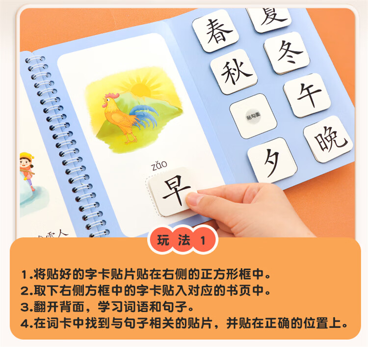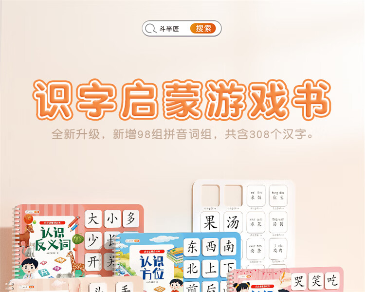 Doubanjiang Literacy Enlightenment Game Book for Children's Literacy Early Education Velcro Literacy Cards Tear-Off and Paste Educational Toy Book Children's Picture Book Game Tear-Off Book Extracurricular Independent Reading Book Holiday Reading (10 volumes in total)