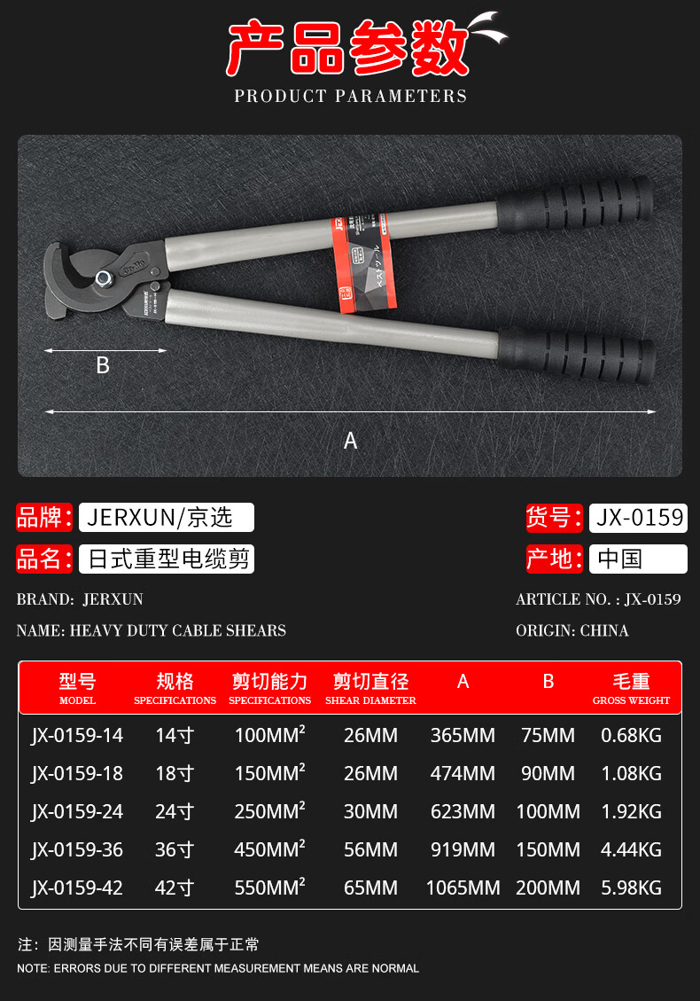 JERXUN Japanese-style heavy-duty cable cutters electrician cable cutting scissors labor-saving cutting steel cable cable scissors hand tools 24 inches, total length 623mm