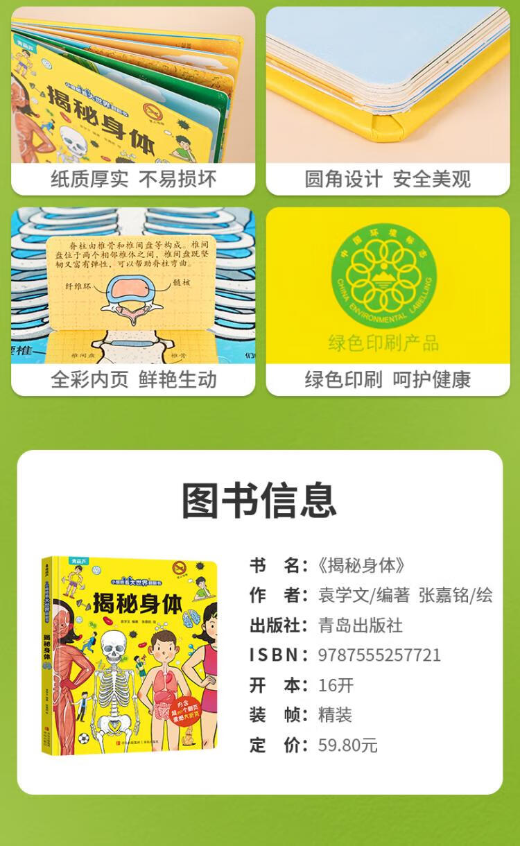 Small eyes see the big world, flip through the book and reveal the body. 3-10 years old. Multiple theme scenes, let children understand their own bodies, satisfy their curiosity and cultivate good habits. Children's books for 3 years old, 4 years old, 5 years old, 6 years old, 7 years old, 8 years old, 9 years old and 10 years old. Summer extracurricular books for independent reading. Green Hulu