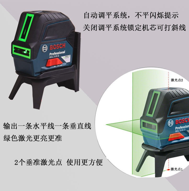 Bosch (BOSCH) green light level 2-line GCL2-15G infrared level laser level strong light line marking GCL2-15G green light level standard