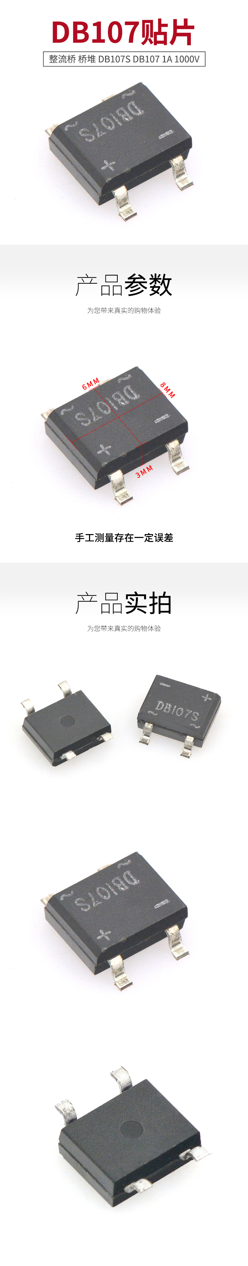 TaoTimeClub rectifier bridge DB107S 1A/1000V bridge stack 10 pieces