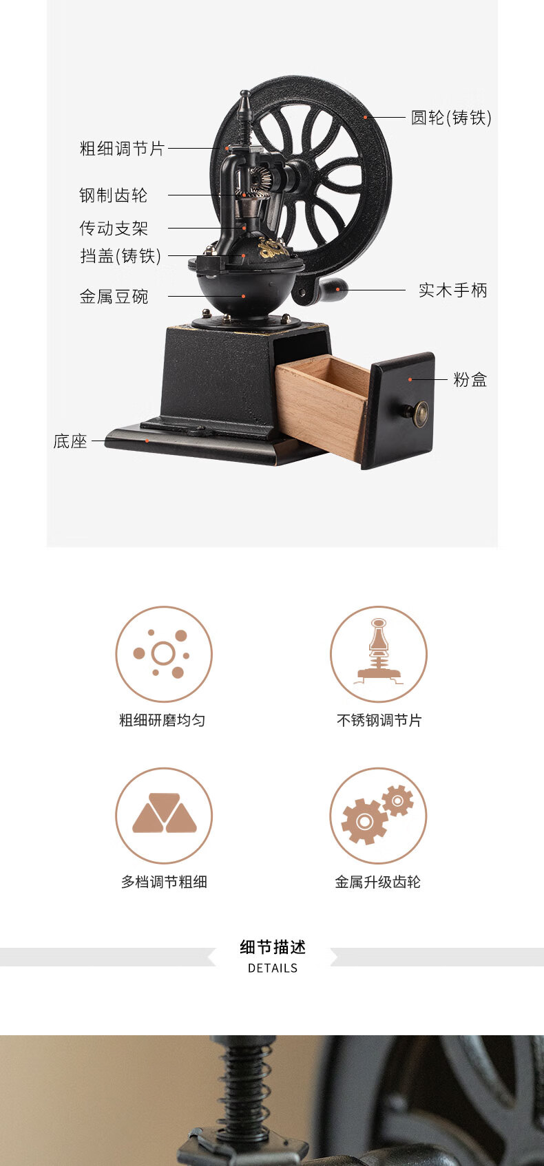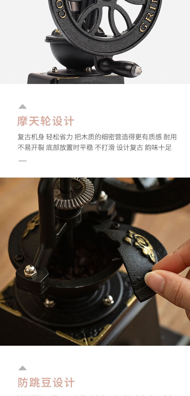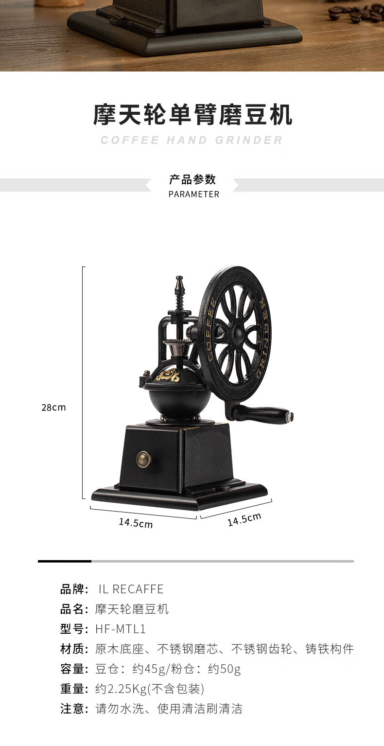 Royal Coffee Hand Grinder Household Coffee Bean Grinder Wheel Retro Hand Grinder Coffee Grinder Wooden Body Retro Hand Grinder