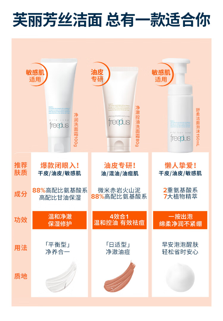 Freeplus facial cleanser for men and women amino acid soothing cleansing foam 150ml