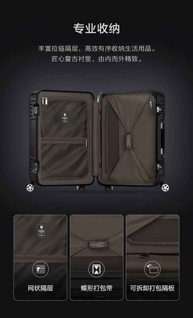Samsonite Trolley Aluminum Magnesium Alloy Suitcase Sturdy Anti-pressure Suitcase Business Travel Large Capacity Universal Wheel Boarding Case DB3 Black 20 Inches