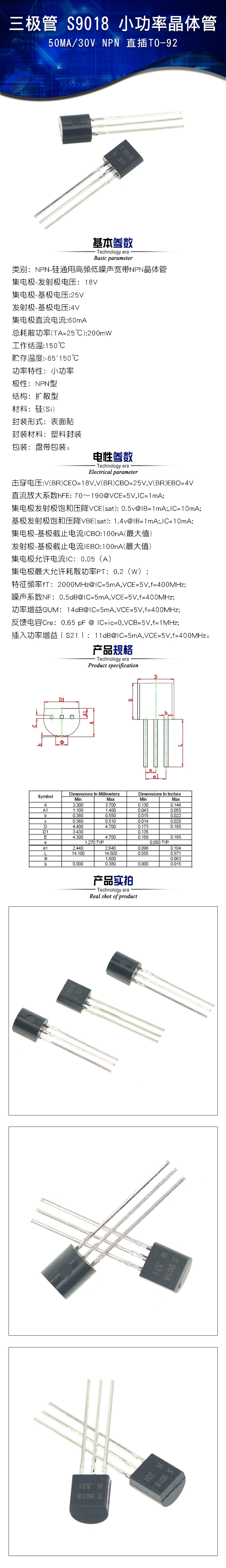TaoTimeClub S9018 TO-92 transistor 50MA/30V NPN transistor 10 pieces