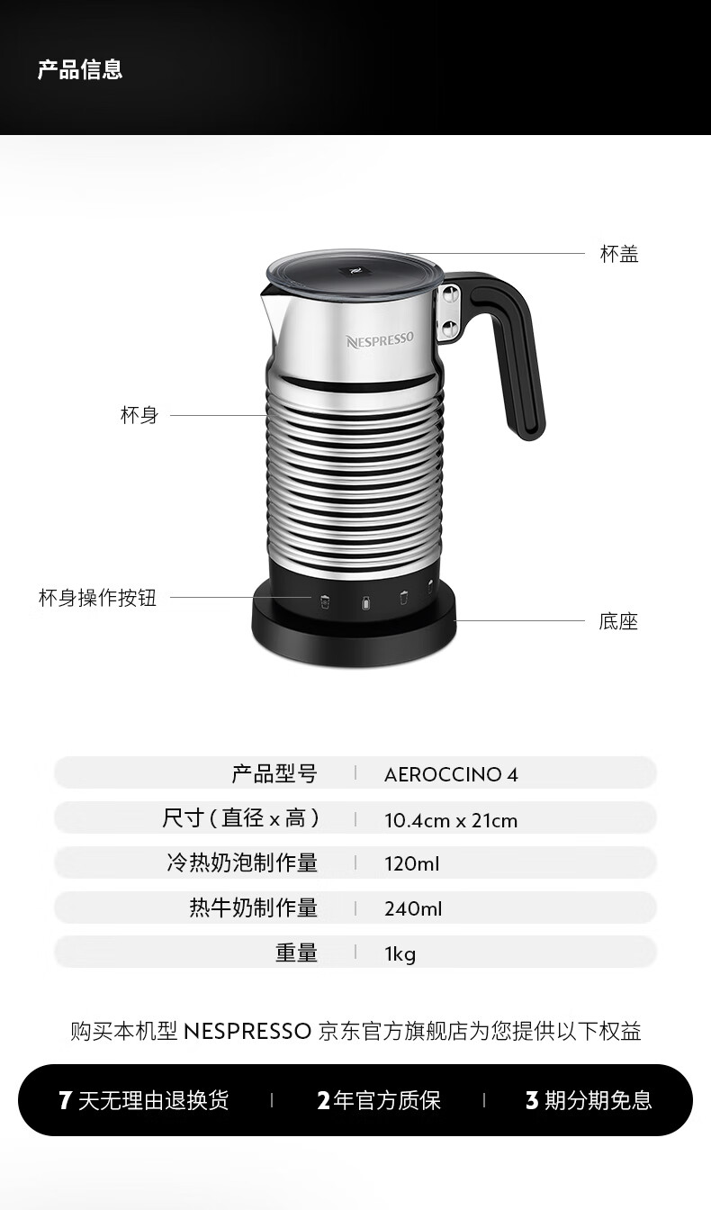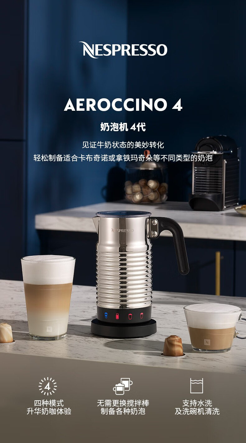 Nespresso Nespresso Milk Frother 4th Generation Multifunctional Fully Automatic Hot and Cold Milk Frother Aeroccino 4 Silver