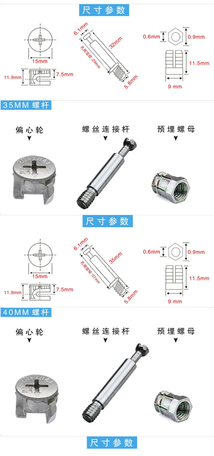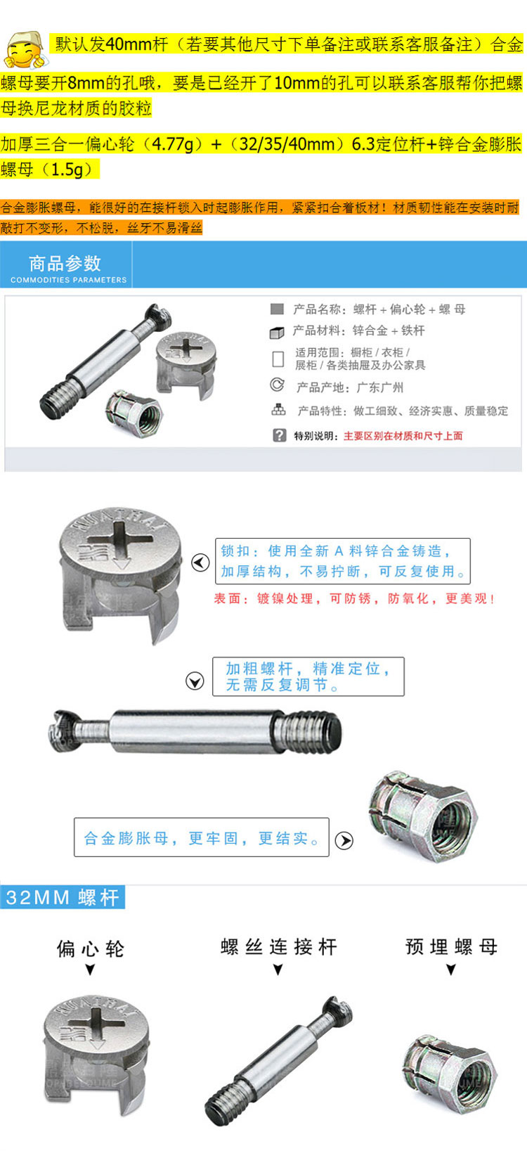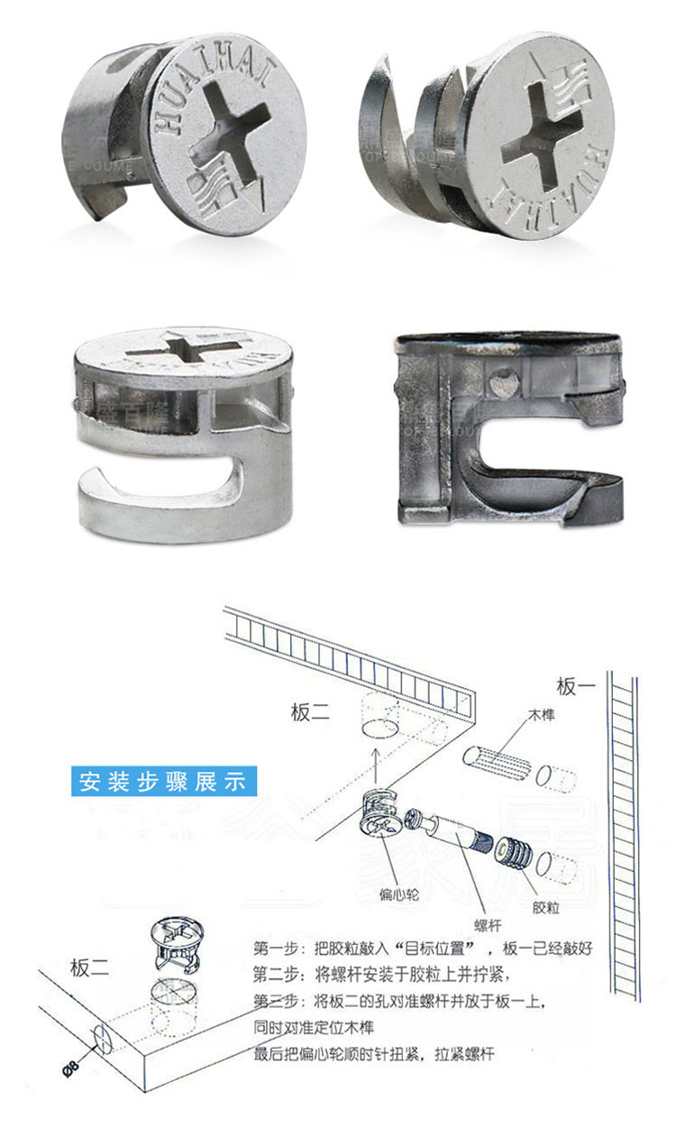 Thickened furniture hardware three-in-one connection piece wardrobe cabinet bed fastener screw eccentric wheel nut assembly accessories
