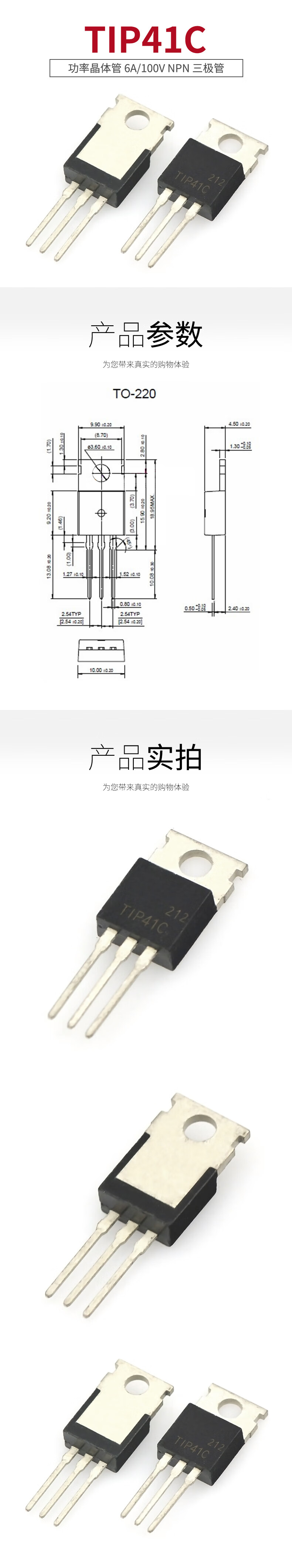 TaoTimeClub TIP41C power transistor 6A/100V NPN triode package TO220