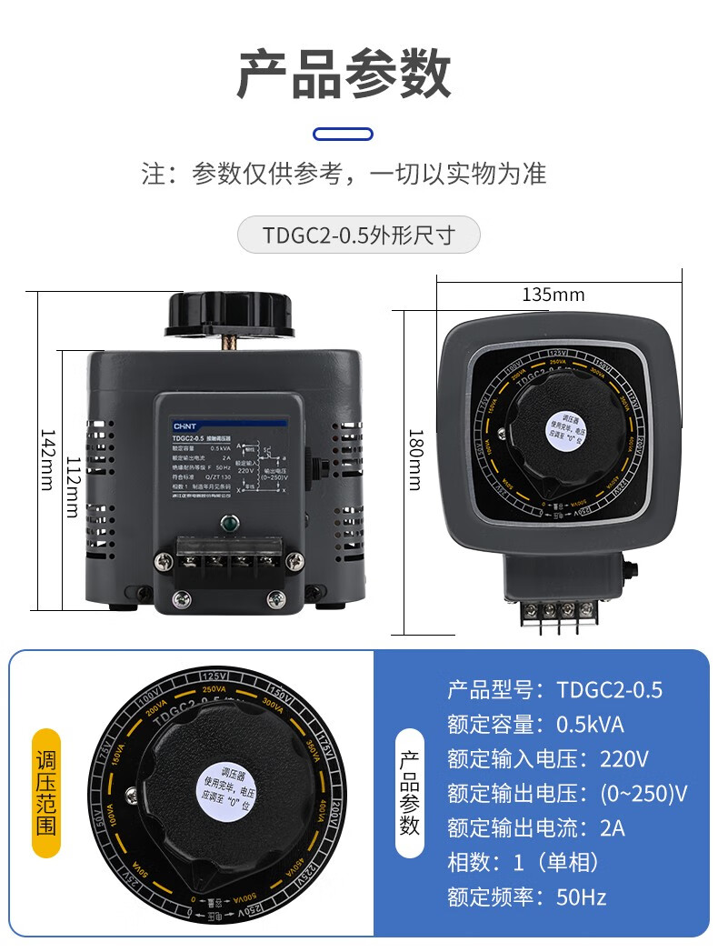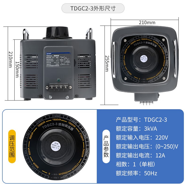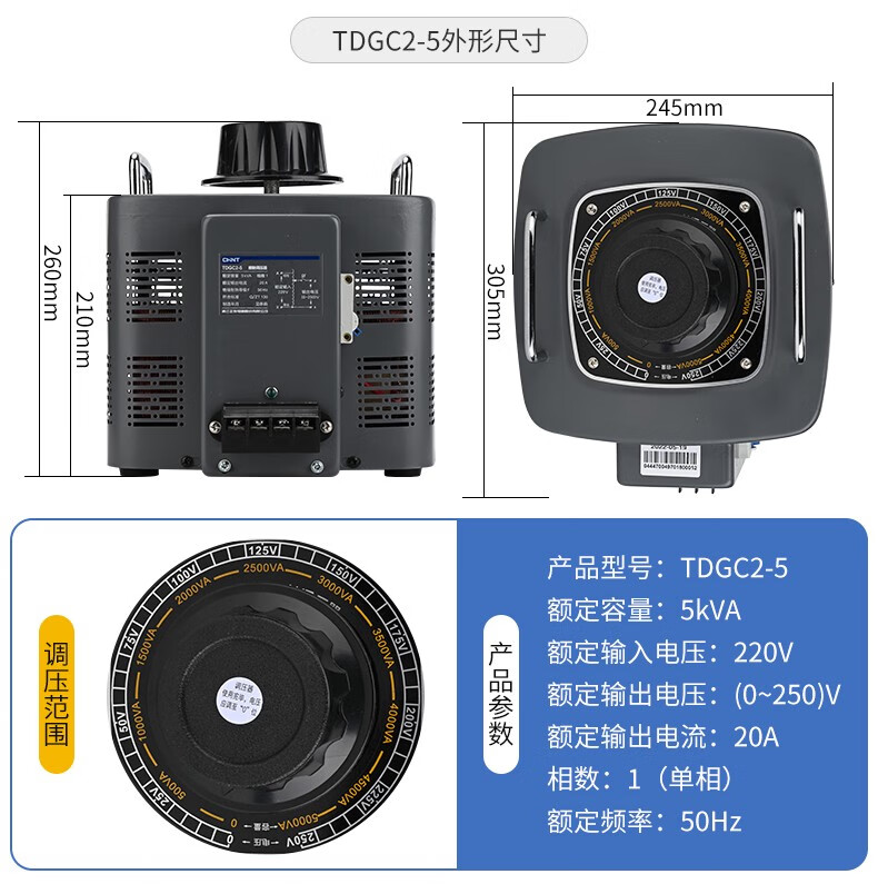 Chint single-phase voltage regulator 5000w input 220v voltage regulator TDGC2 5kva adjust voltage 0v-250v