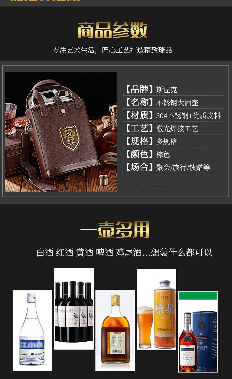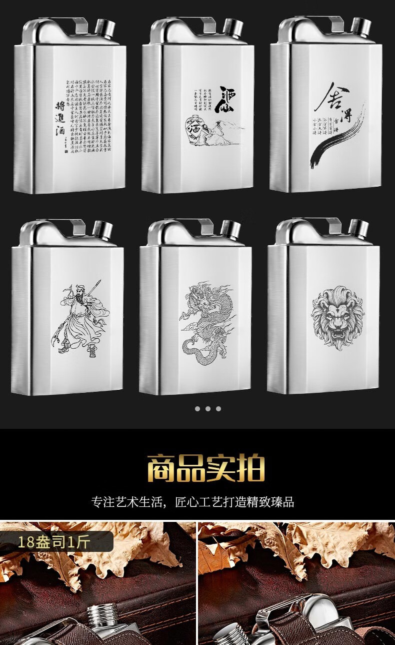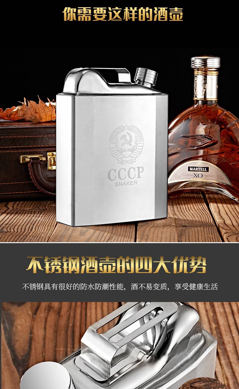 SNAKER hip flask 304 stainless steel portable flat wine bottle iron wine set portable stainless steel 1 to 7 jins for liquor outdoor 3 jins oil bottle style 1 wine drain 4 wine glasses 1.5L