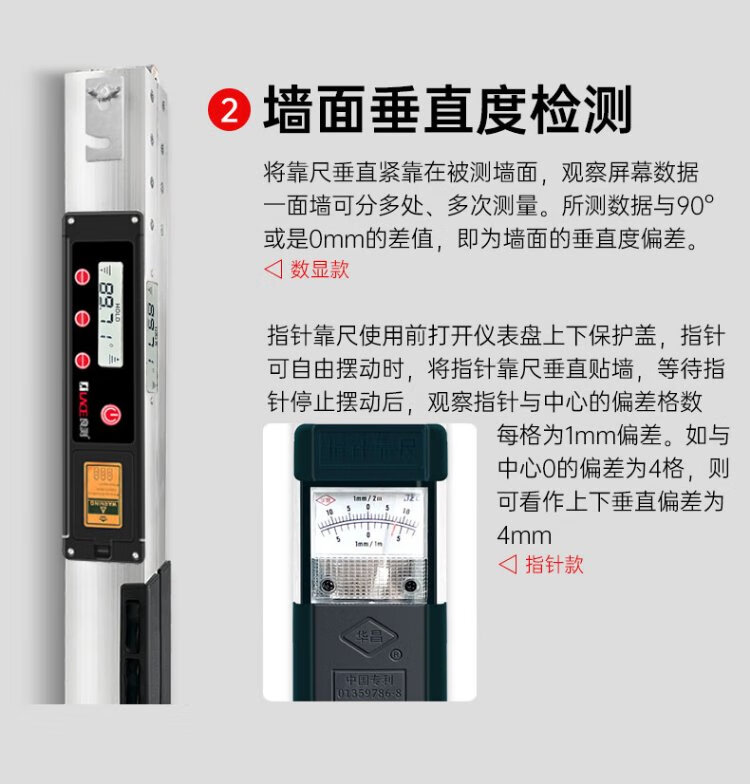 Huachang 2-meter smart digital display ruler Huachang aluminum alloy vertical detection ruler actual measured infrared transmission level ruler Huachang 2-meter pointer ruler to measure horizontal and vertical