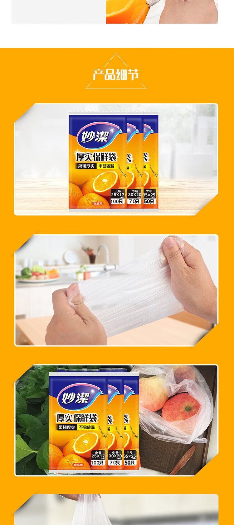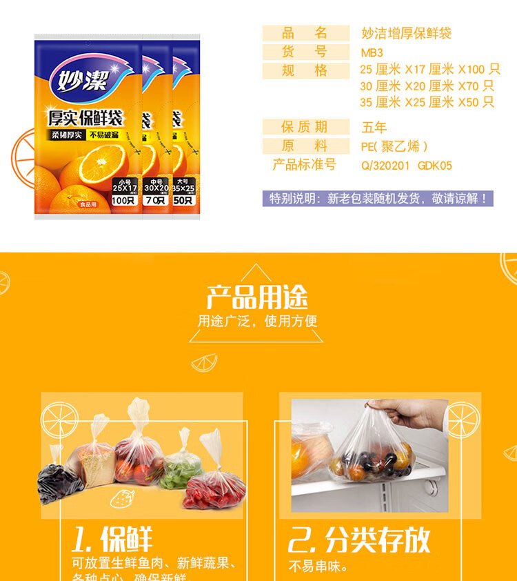Miaojie fresh-keeping bag combination pack, large size 50 pieces, medium size 70, small size 100, total 220 pieces, thickened food bags