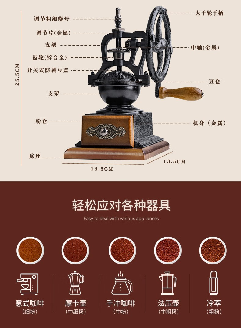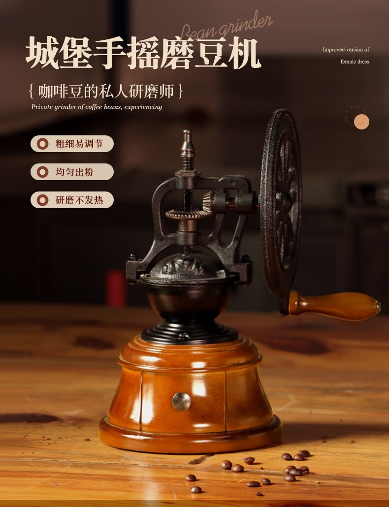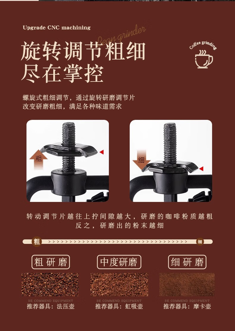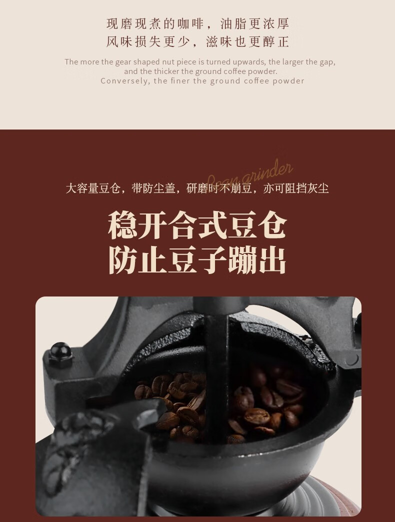 L-BEANS hand-cranked bean grinder household coffee bean grinder manual coffee machine grinder upgraded version grinding core wheel adjustable small handwheel bean grinding machine (carbon steel grinding core)