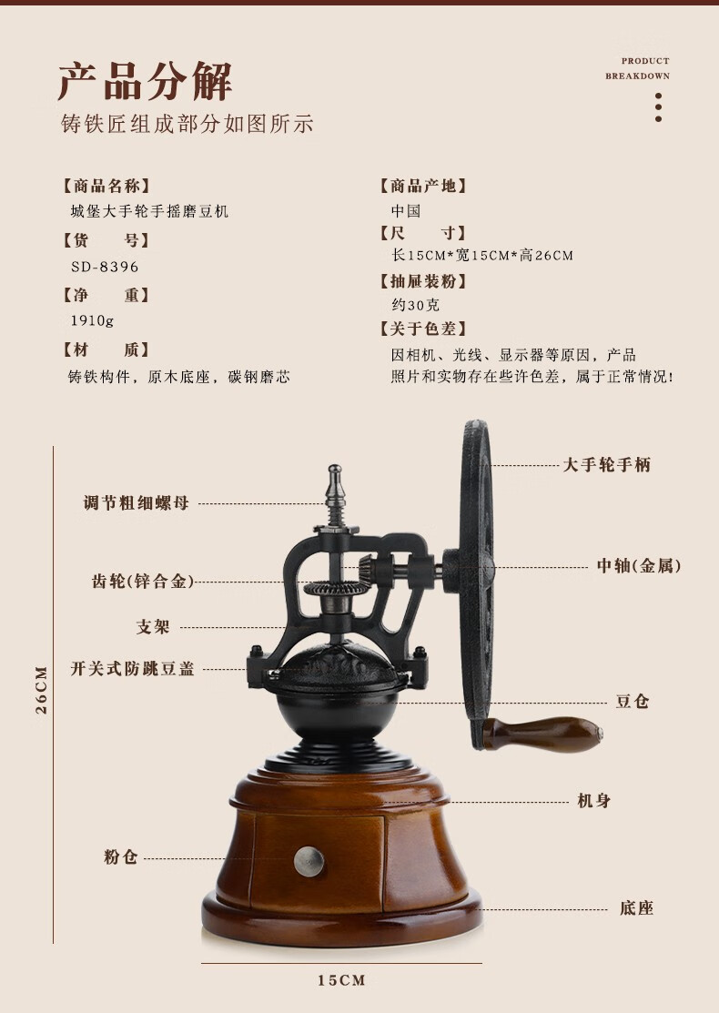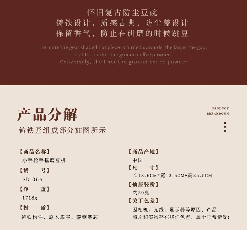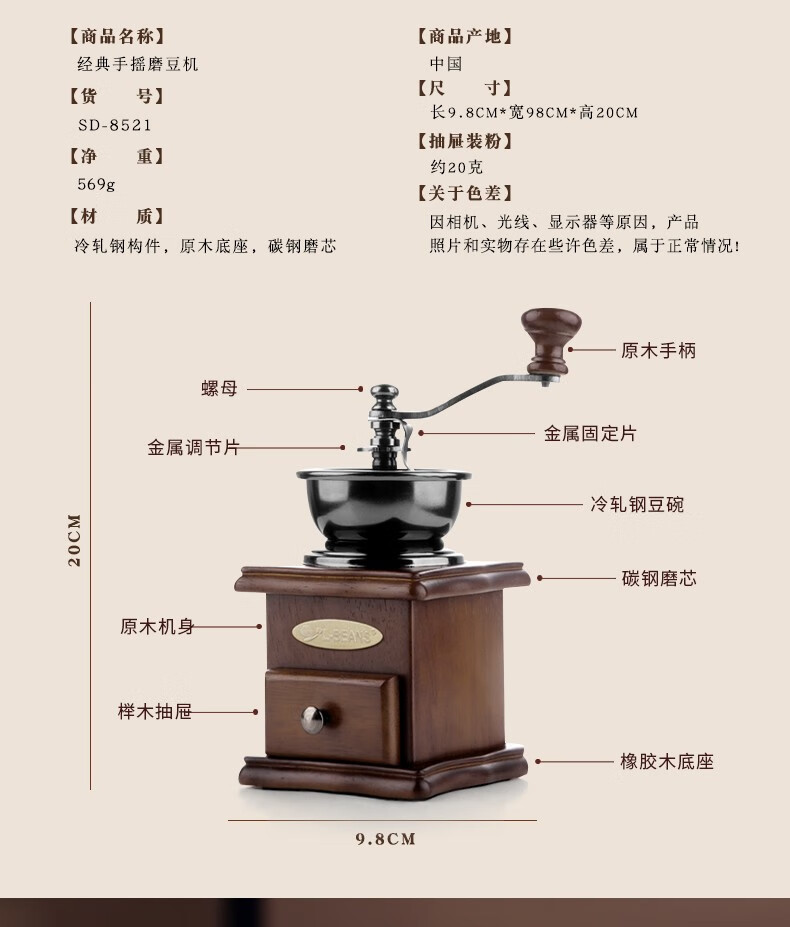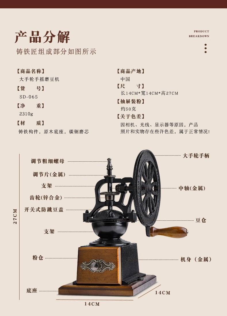 L-BEANS hand-cranked bean grinder household coffee bean grinder manual coffee machine grinder upgraded version grinding core wheel adjustable small handwheel bean grinding machine (carbon steel grinding core)