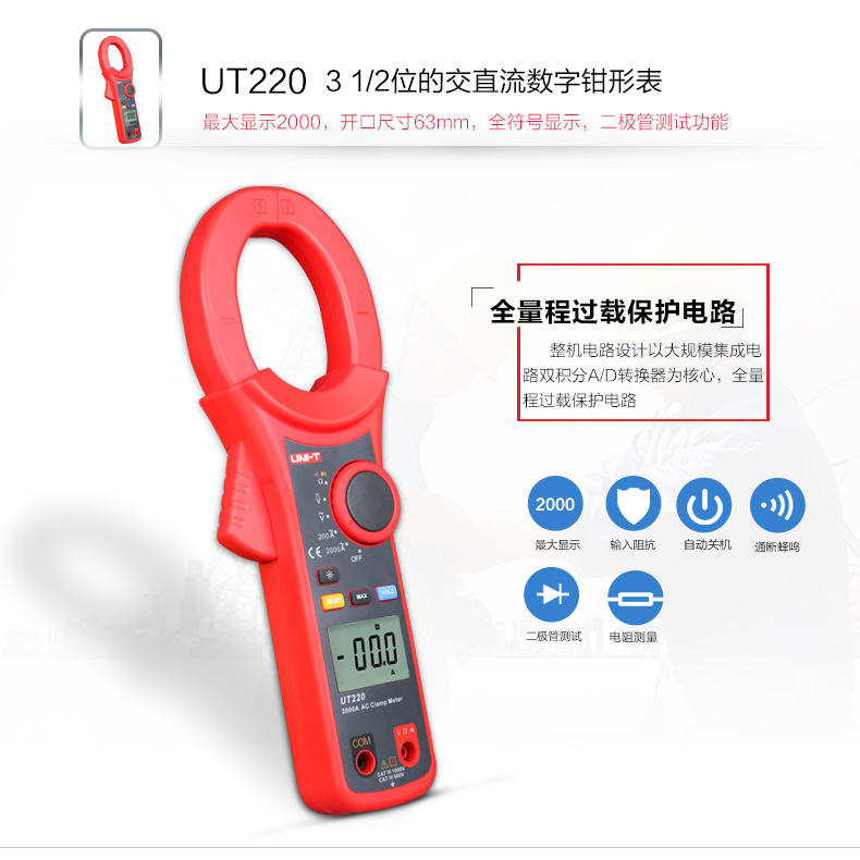 Uni-T UT220/UT221 digital clamp meter digital display AC ammeter multimeter UT220