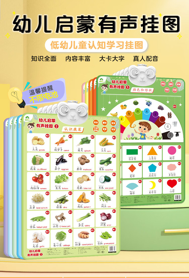 Toddler enlightenment audio wall chart, recognition time, early education toys for children aged 3-6 years old, enlightenment recognition, time reading, picture recognition, click reading audio wall chart, click reading audio book, early education audio book