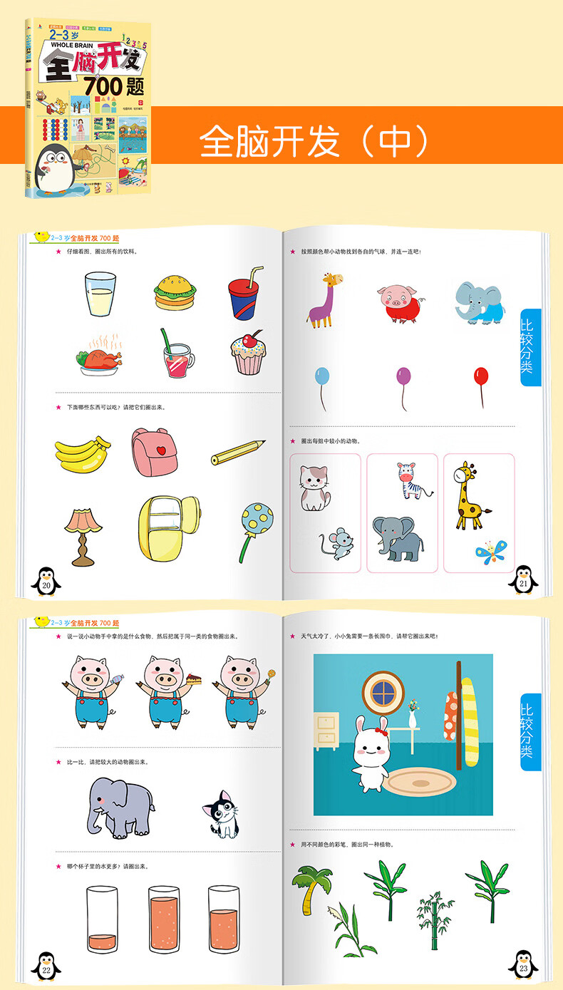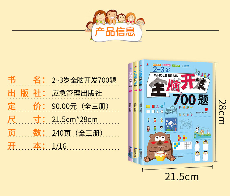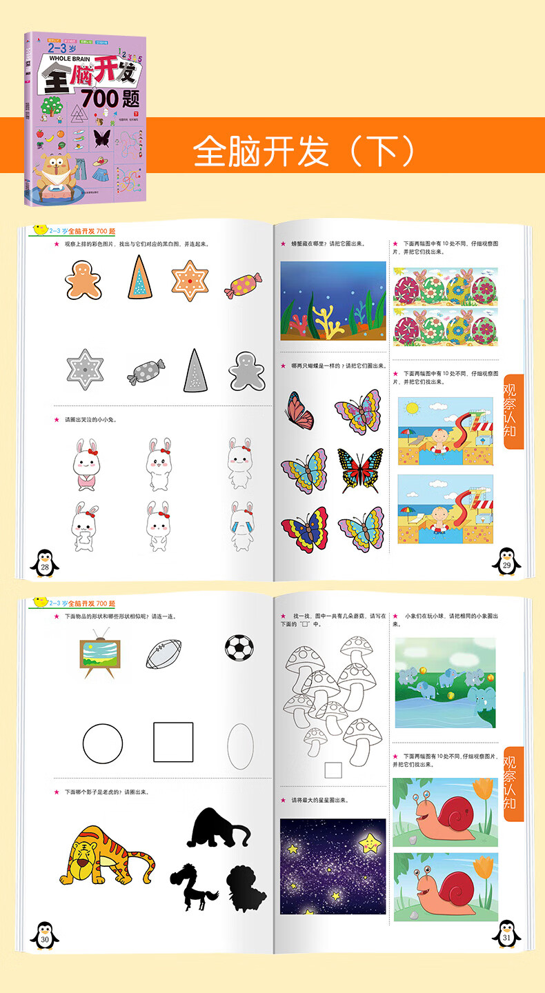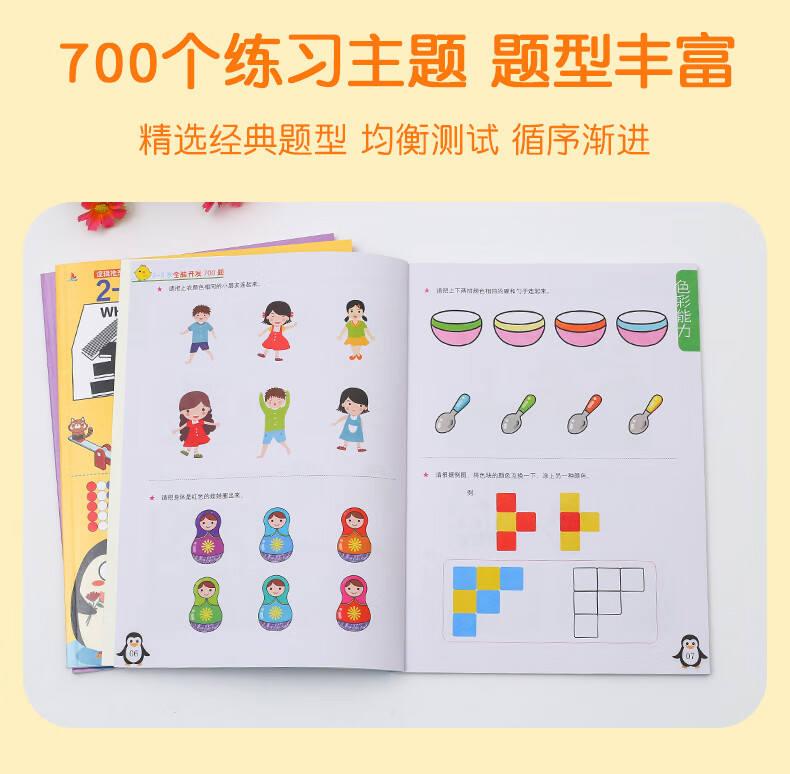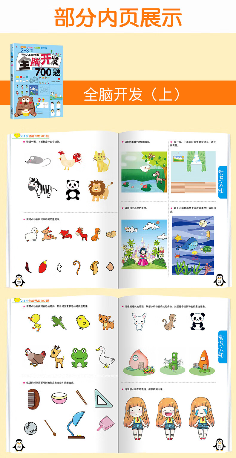 Whole brain development 700 questions 2-3 years old, 3 volumes of children's educational books, concentration training exercise books, full set of game books, reading extracurricular books, extracurricular independent reading holiday books