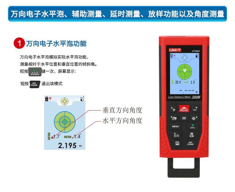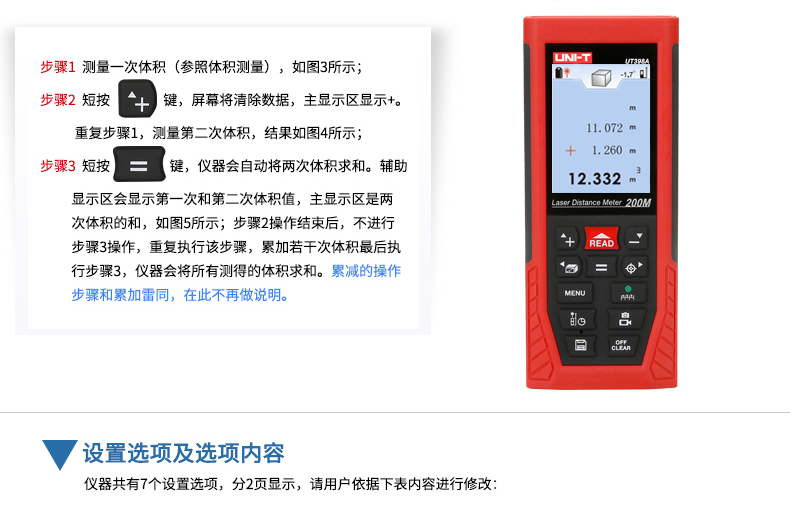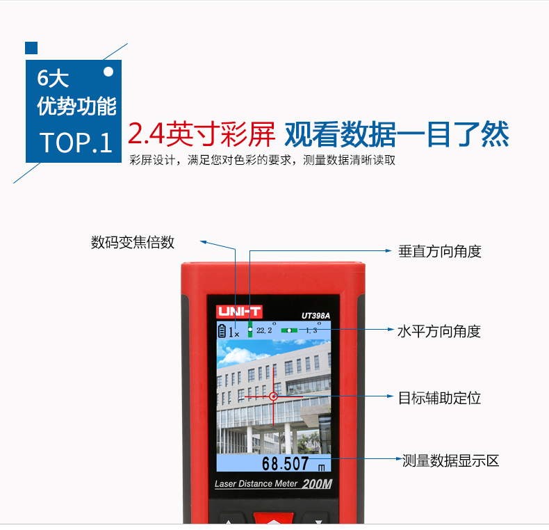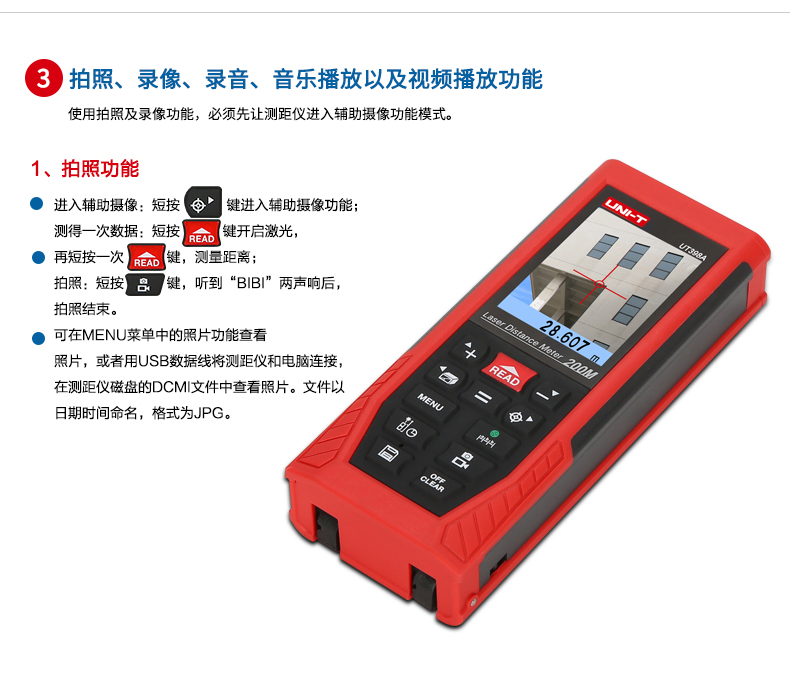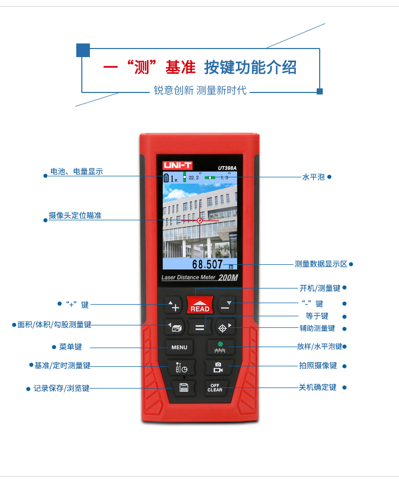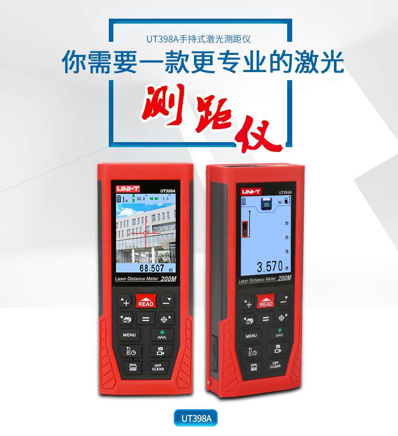 Unilide high-precision rangefinder 200 meters laser rangefinder color screen UT398A electronic ruler with camera UT398A