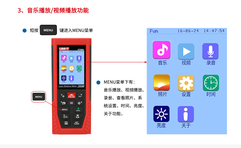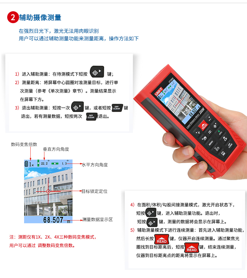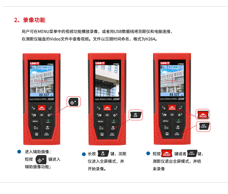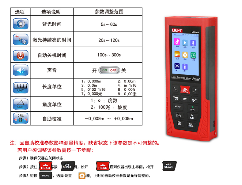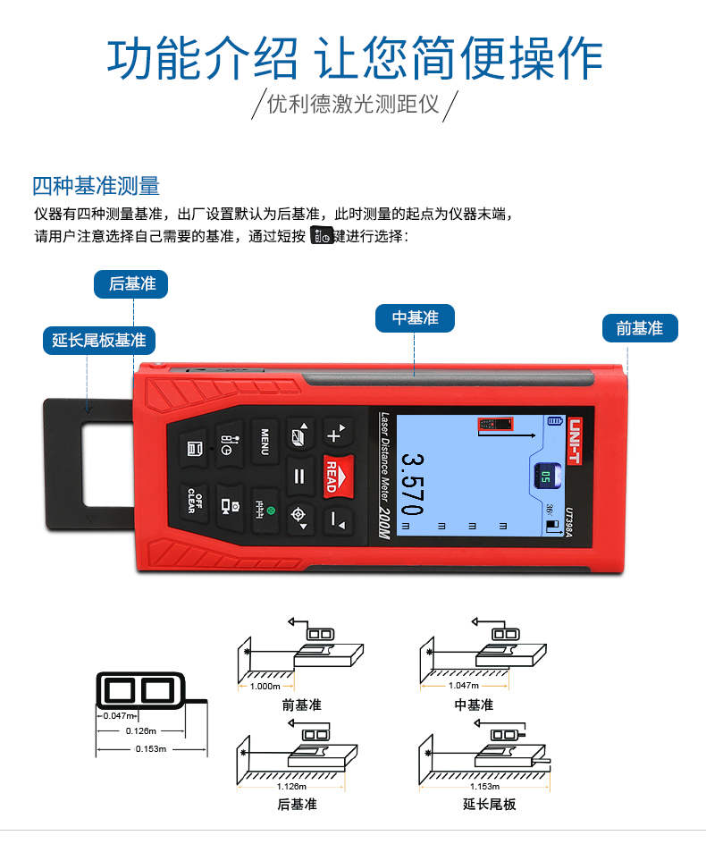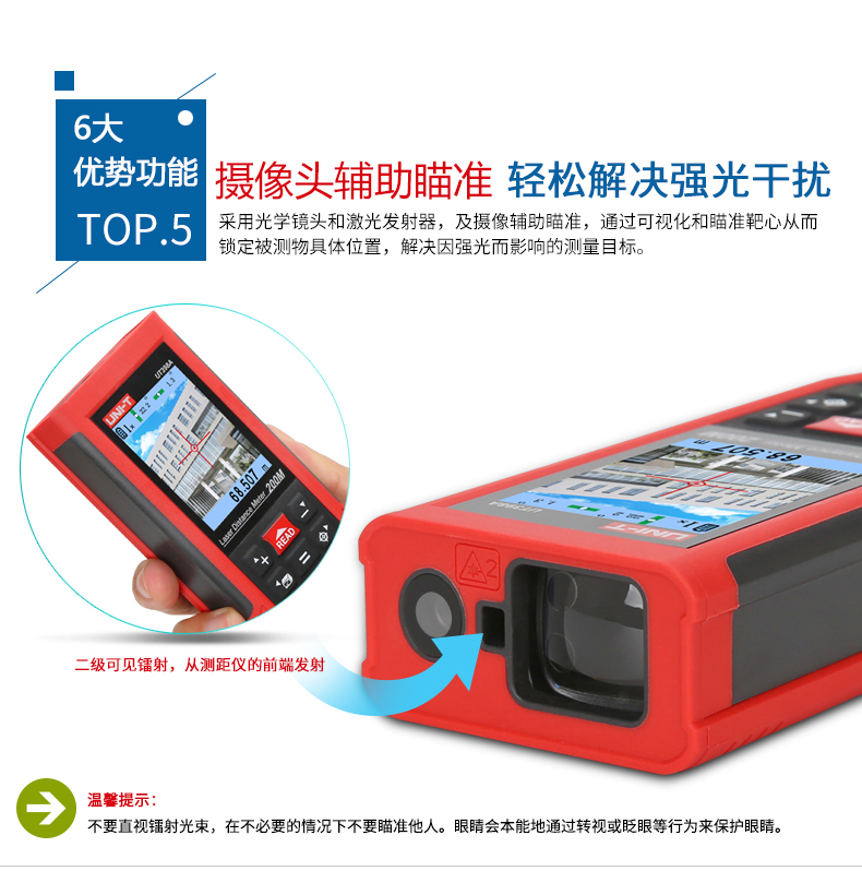 Unilide high-precision rangefinder 200 meters laser rangefinder color screen UT398A electronic ruler with camera UT398A