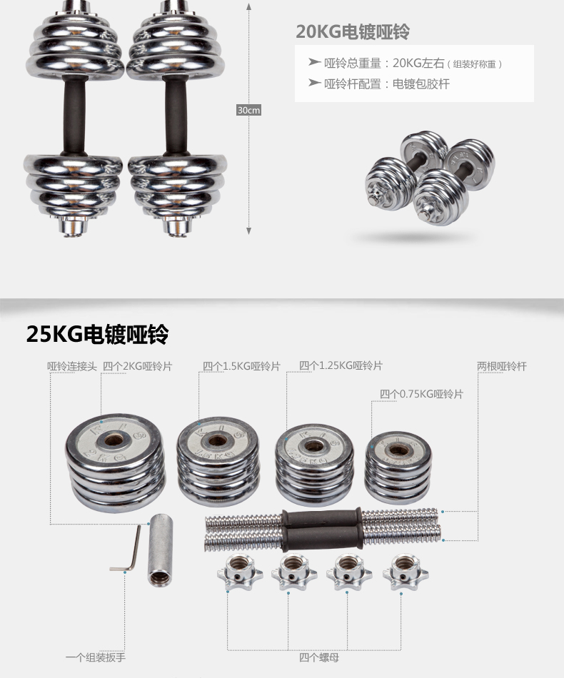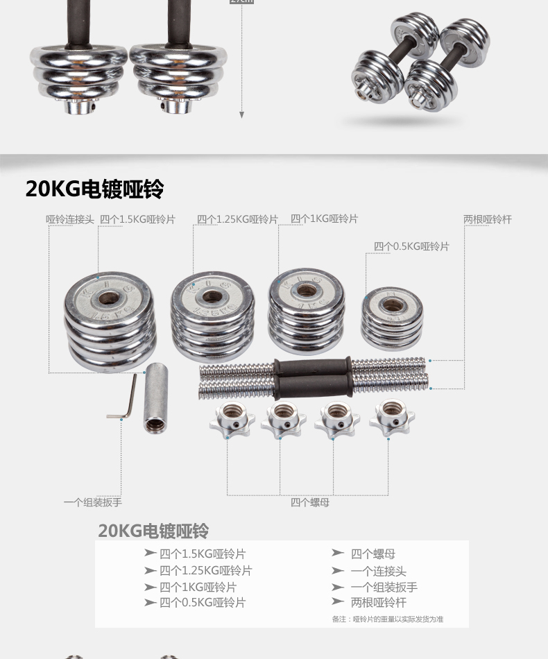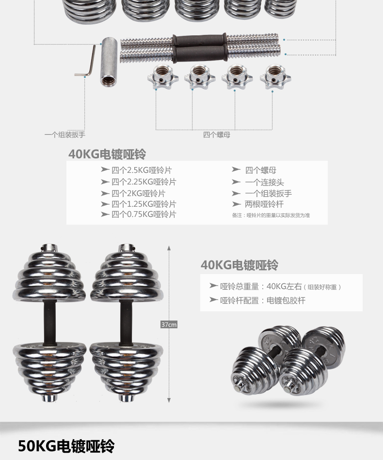 Linuo electroplated dumbbells 20kg kg 10KG-50kg men's dumbbells home dumbbells sports dumbbells fitness equipment dumbbell set combination 20KG one payment = 2 pieces of 10KG Express delivery to most areas, remote provinces will bear the transfer fee themselves.