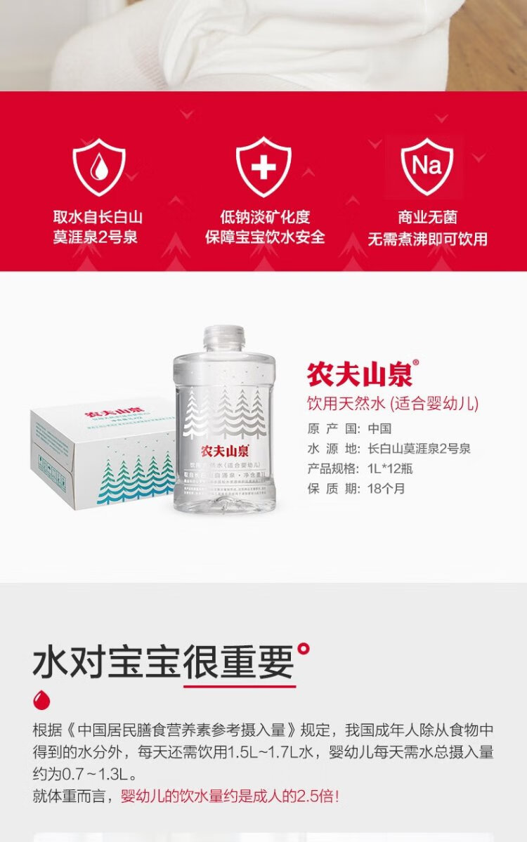 Nongfu Spring Drinking Water Drinking Natural Water (Suitable for Infants and Young Children) 1L*12 Bottles Full Box