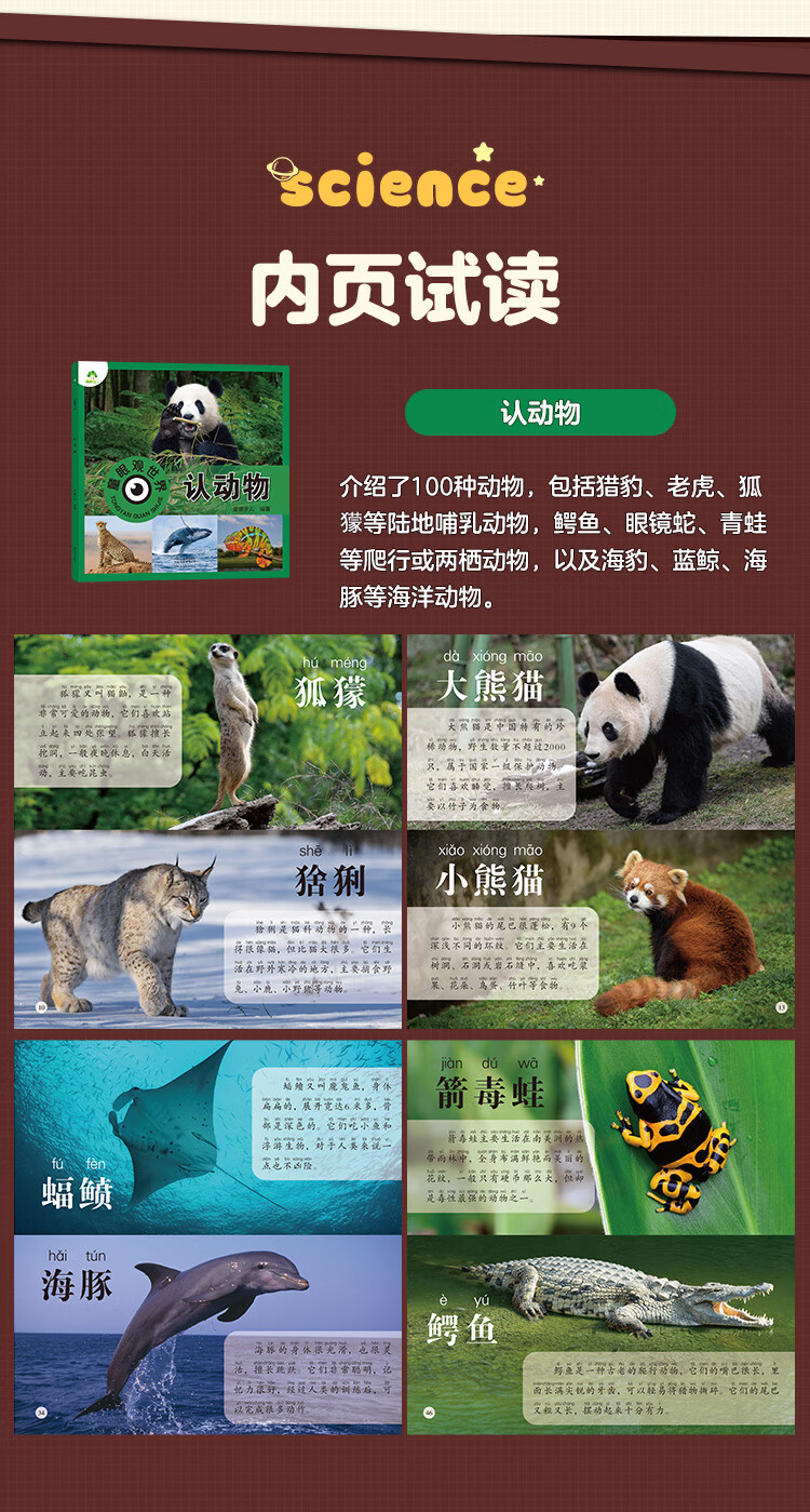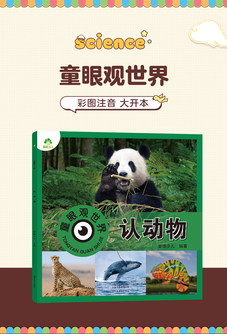Amity Children's Children's Eyes Viewing the World and Recognizing Animals 3-6 Years Old Children's Reading Picture Recognition Book Kindergarten Enlightenment Puzzle Early Education Picture Book Animal Encyclopedia Complete Set of Color Pictures and Phonetic Version