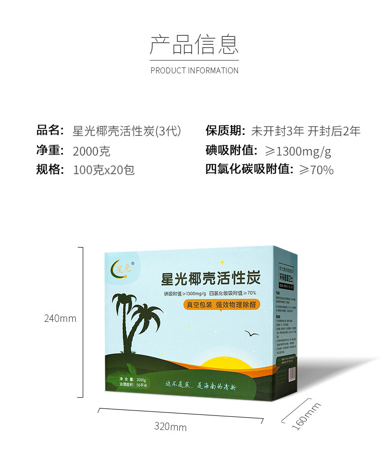 Starlight Hainan Coconut Shell Activated Carbon Pack for new homes, new cars, home decoration, powerful removal of formaldehyde, benzene and odor absorption, high iodine value