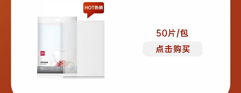 Deli vacuum packaging machine, small commercial fully automatic vacuum sealing machine, household plastic sealing machine, 14912 vacuum packaging bag, 50 pieces (20*30cm)