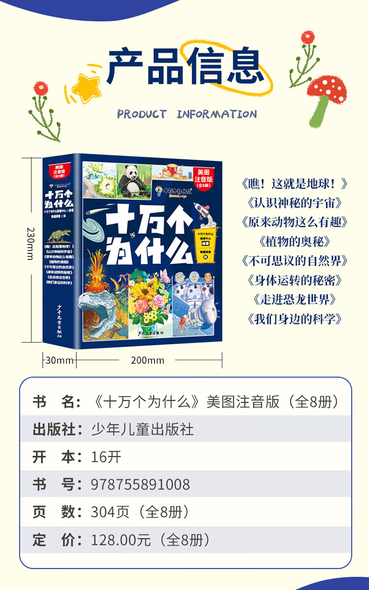 A complete 8-volume version of the phonetic version of One Hundred Thousand Whys for primary school students’ extracurricular reading children’s popular science encyclopedia