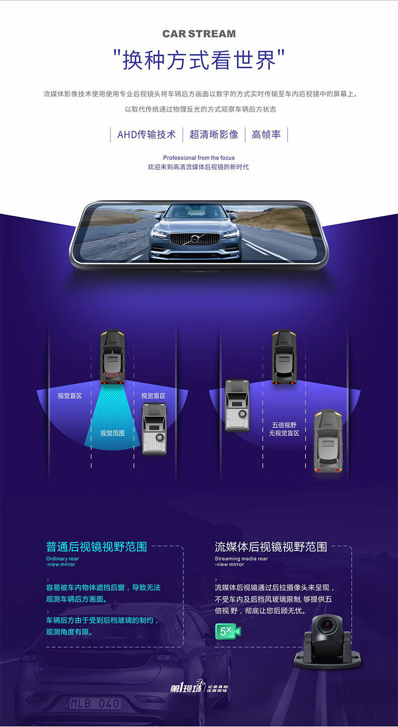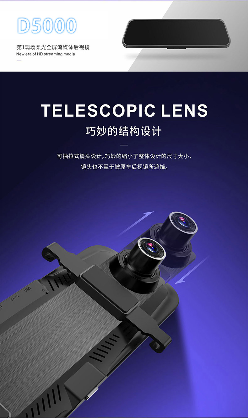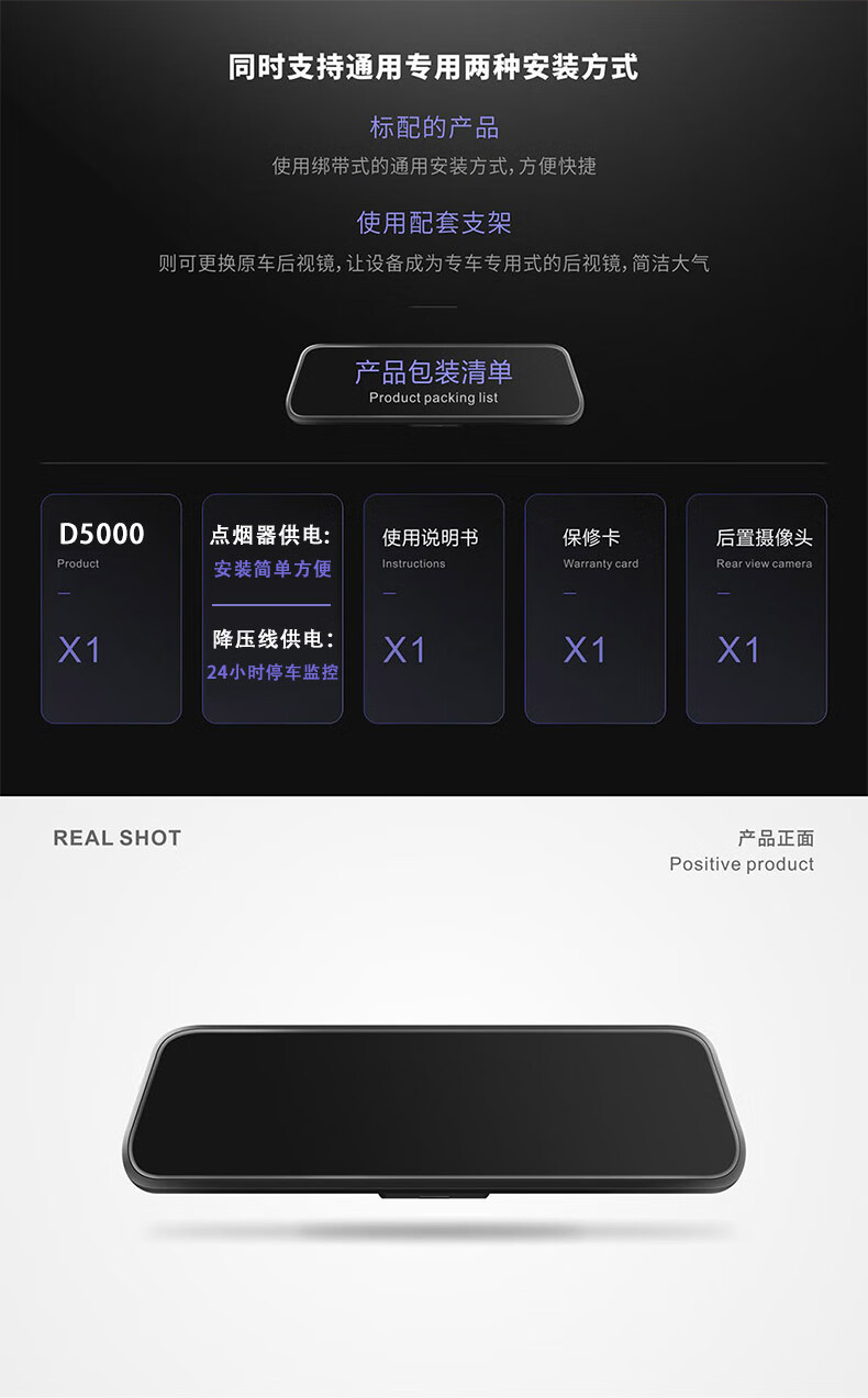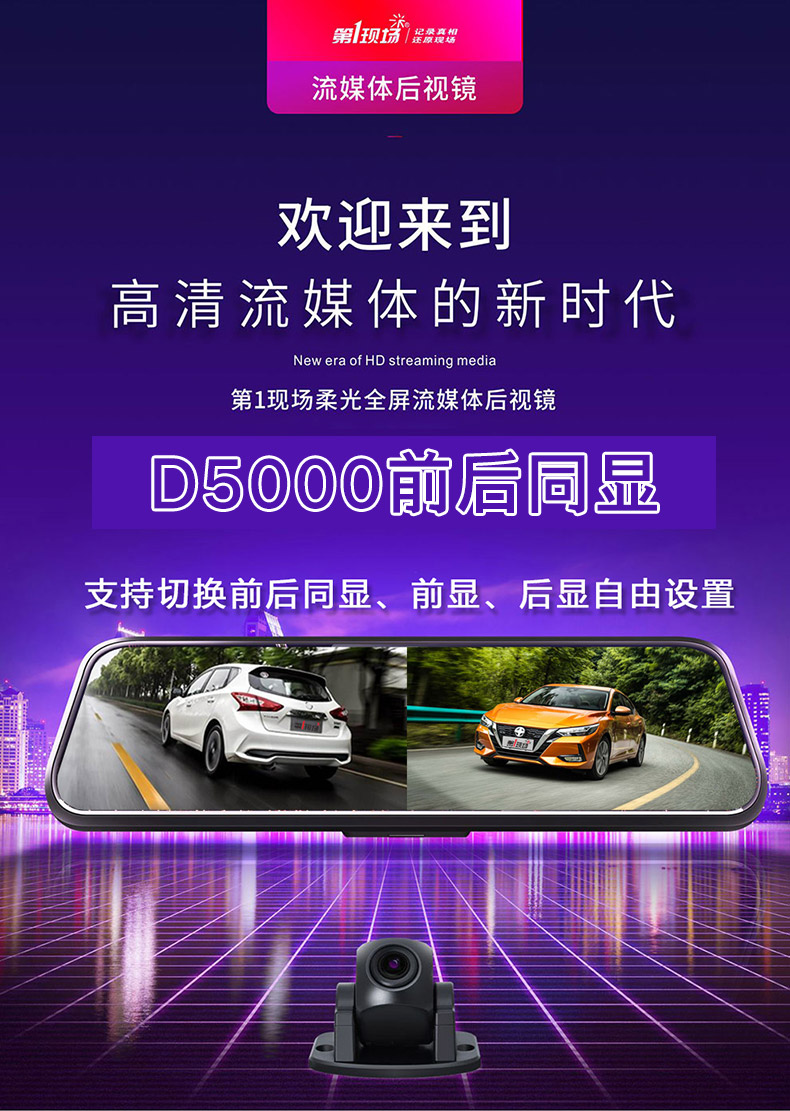 1st Live 1st Live Driving Recorder D5000 Matte Night Vision 9.66-inch Touch Screen Streaming Media Parking Monitoring Streaming Media/Dual Recording +64