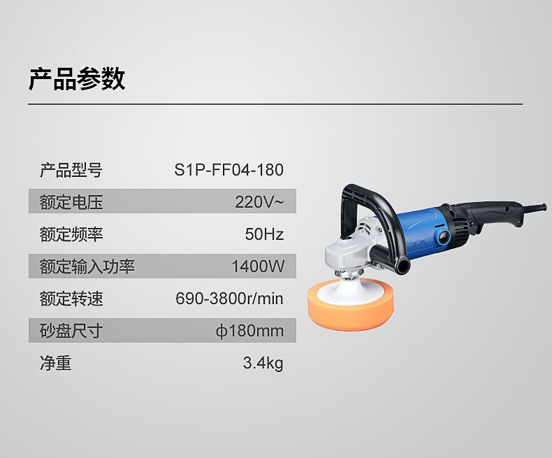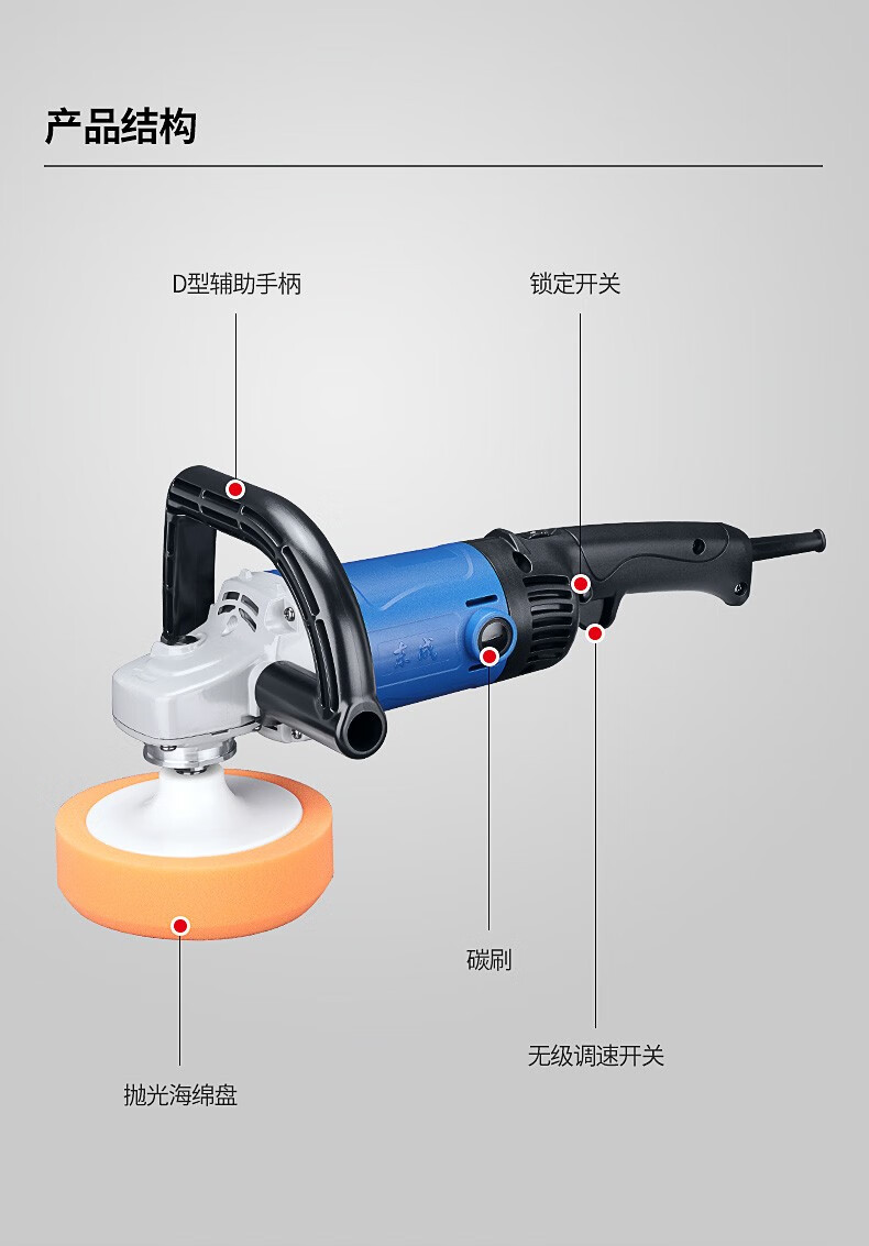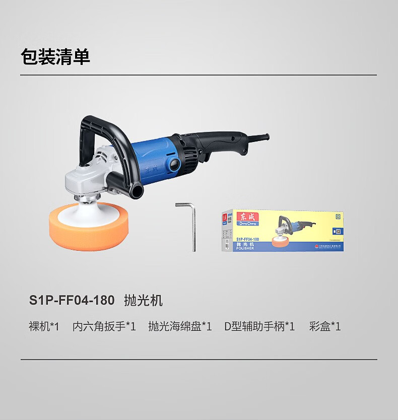 Dongcheng polishing machine speed adjustment polishing machine car waxing and polishing Dongcheng high power polishing machine car maintenance special S1P-FF04-180 1400W 6-speed speed adjustment soft start